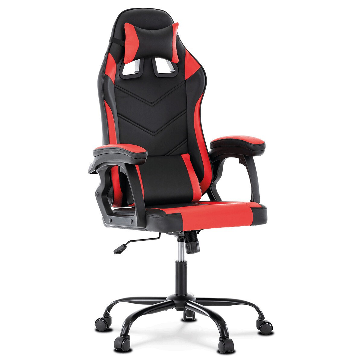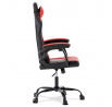 Herní křeslo v kombinaci červené a černé ekokůže nabízí ergonomicky tvarovaný opěrák s možností polohování až do úhlu 135°, což umožňuje přizpůsobit pozici pro maximální pohodlí během dlouhých herních sezení. Výškově nastavitelný sedák a pevné čalouněné područky zajišťují individuální komfort a stabilní oporu. Křeslo je vybaveno houpacím mechanismem s polohovou aretací, který umožňuje plynulé naklápění a fixaci v požadované poloze. Kovový kříž poskytuje pevnou a stabilní základnu, zatímco vyměkčená vrchní část sedáku a bederní opěrka podporují správné držení těla. Celková konstrukce je navržena pro dlouhou životnost a snadnou údržbu.