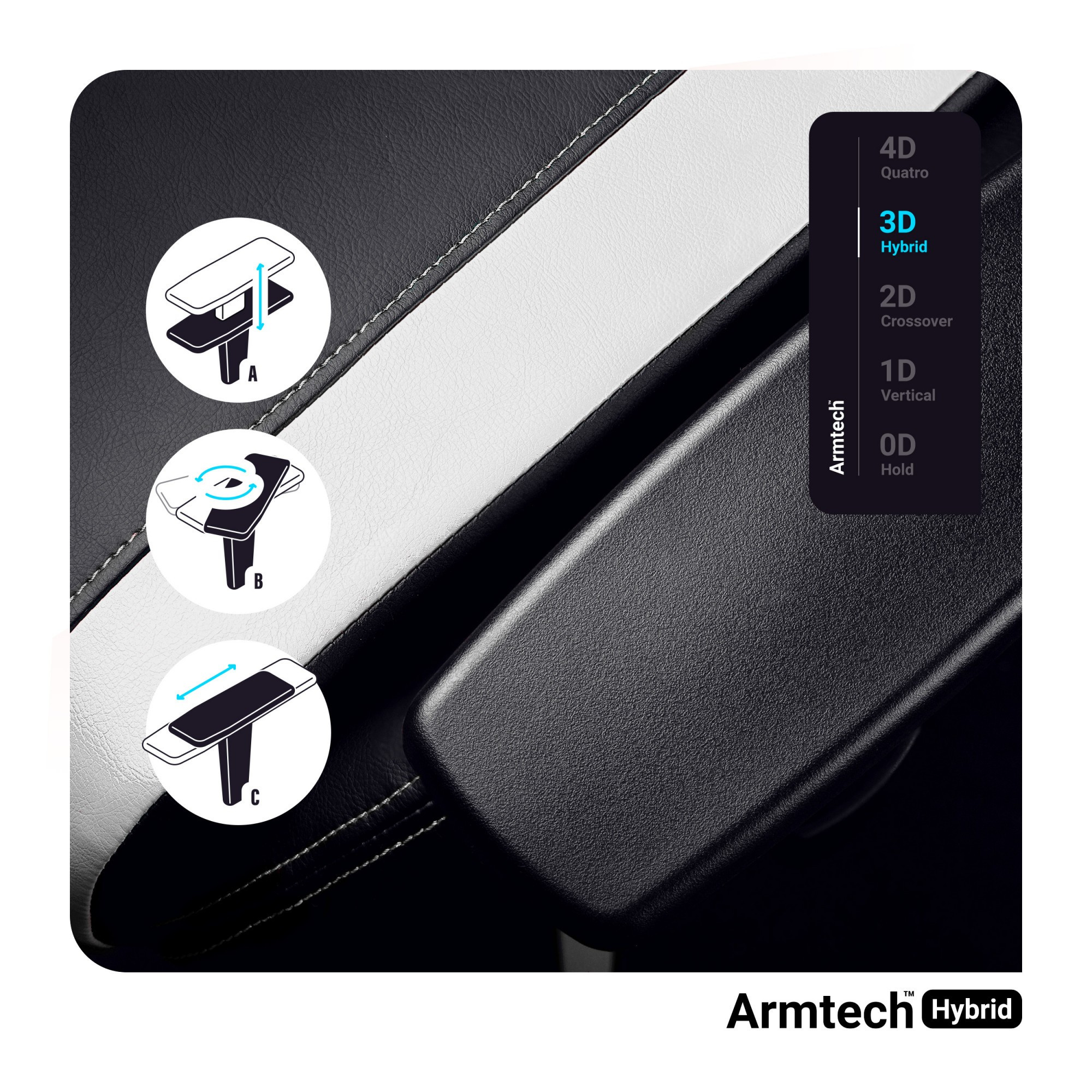- 3D nastavitelné područky: Pro maximální komfort a uvolnění předloktí.