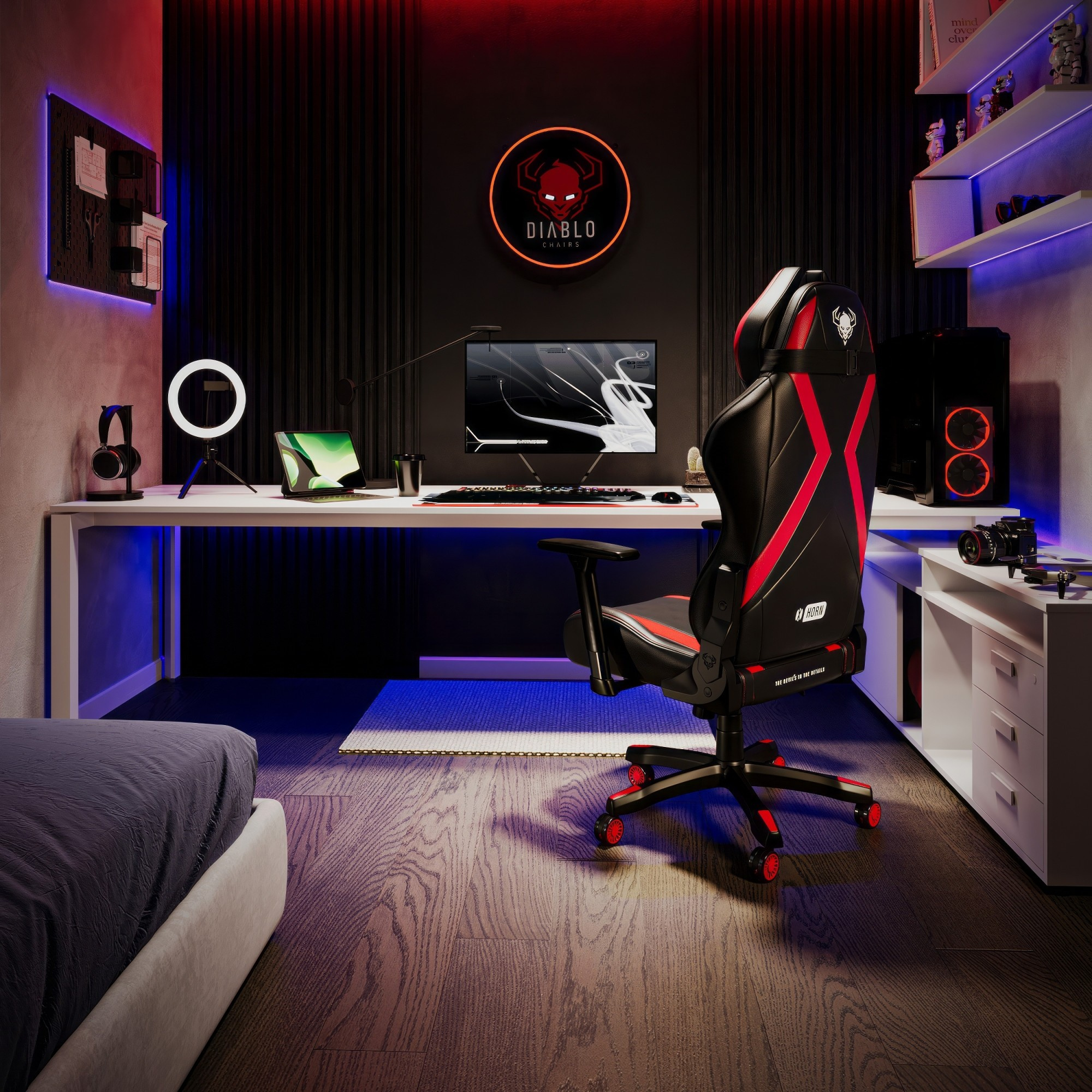 Už na první pohled tě X-Horn 2.0 zaujme svým agresivním, ale zároveň elegantním designem. Kombinace hluboké černé a ohnivé červené vytváří dynamický kontrast, který podtrhuje jeho sportovní siluetu. Rohy a vyšívané logo dodávají křeslu jedinečný charakter a zaručují, že se stane dominantou tvého herního prostoru.