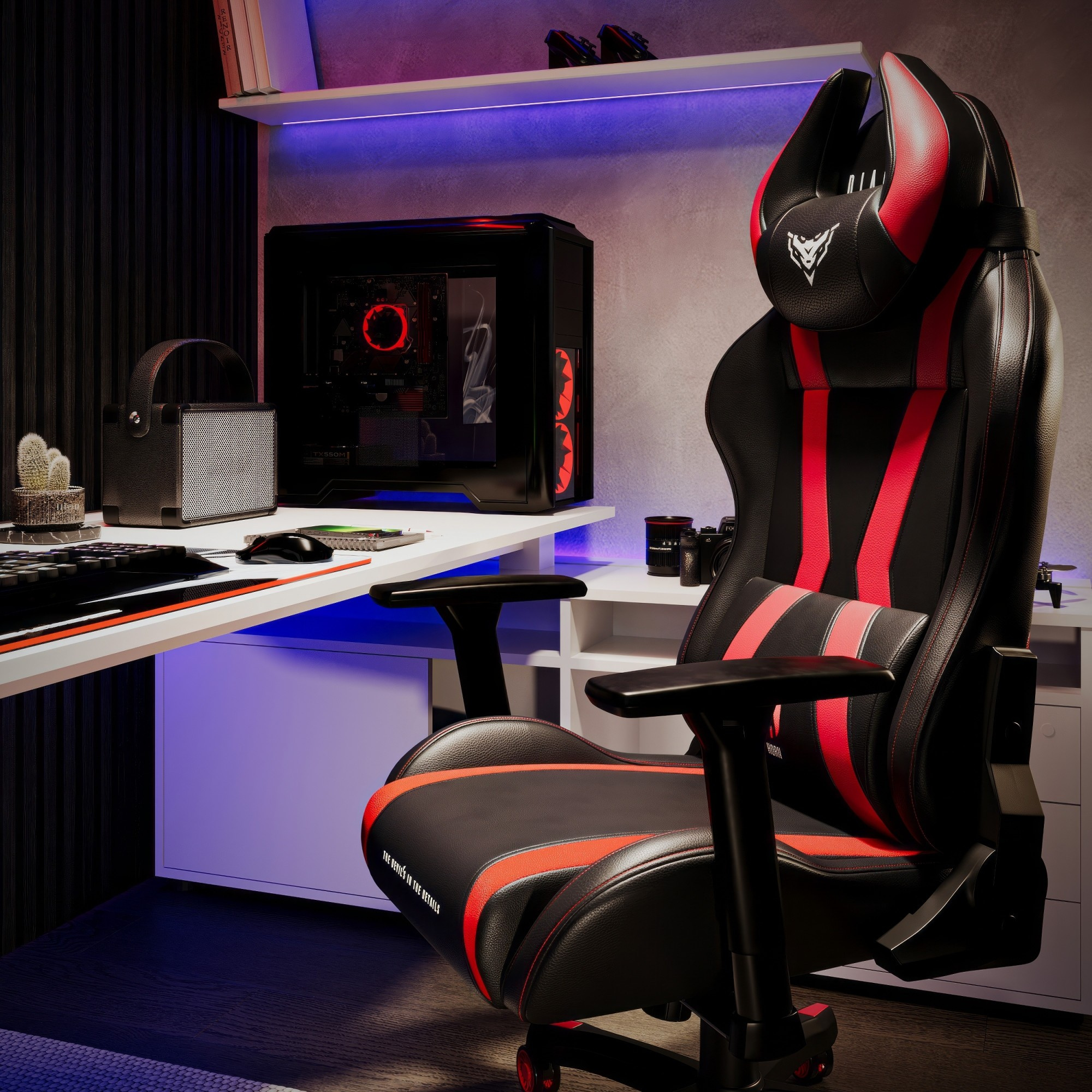 Rohatá opěrka hlavy je nejen designovým prvkem, ale také funkčním doplňkem, který ti poskytne maximální pohodlí a oporu pro tvou hlavu a krk. Zapomeň na nepříjemné bolesti hlavy a užij si nerušenou hru.