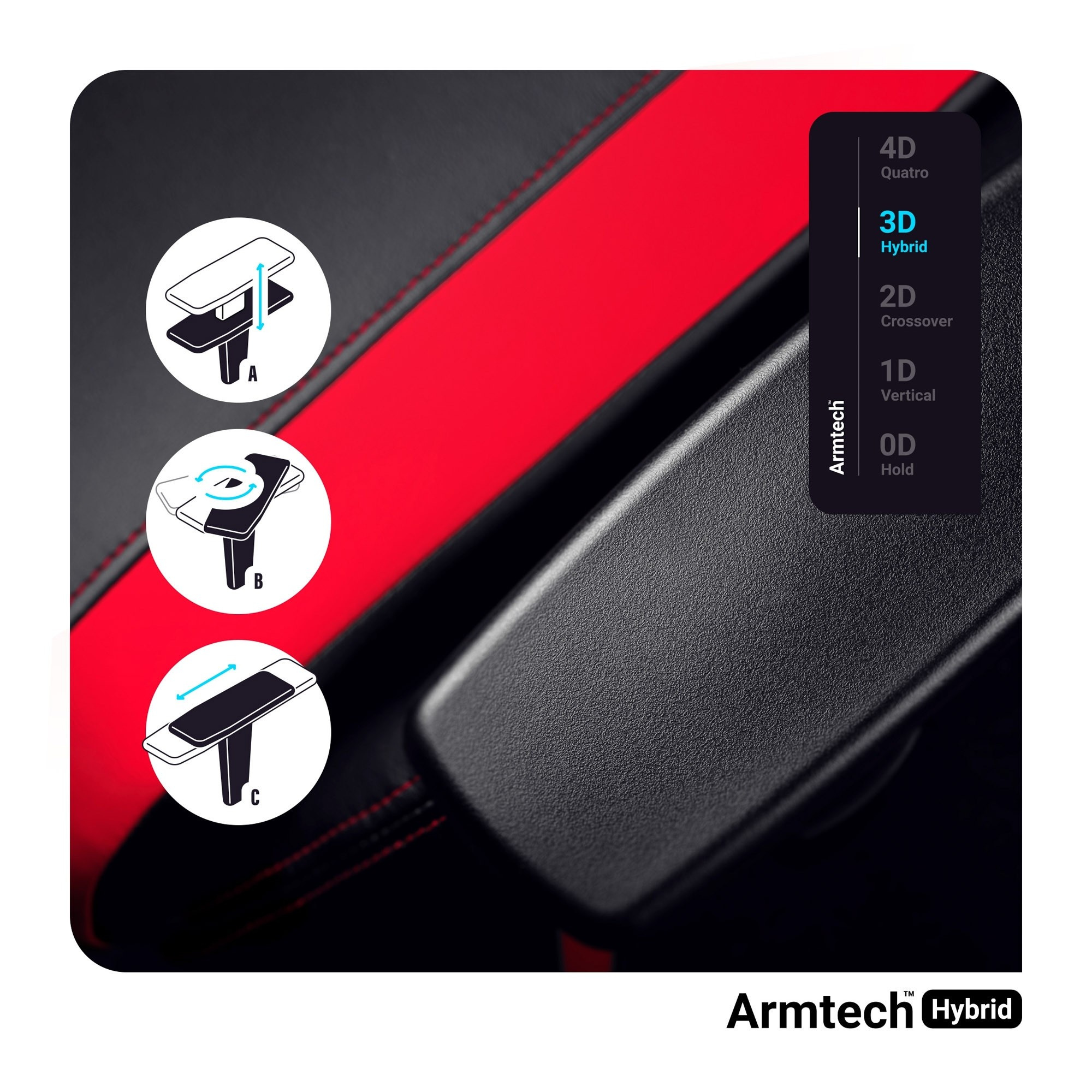 - Podloketníky Armtech™ Hybrid SoftTouch s trojitou regulací: Unavené ruce a ramena? S podloketníky Armtech™ Hybrid SoftTouch se s nimi rozloučíte! Tyto podloketníky jsou nastavitelné ve třech rovinách (nahoru-dolů, vlevo-vpravo a vpřed-vzad), takže si je můžete přizpůsobit přesně podle svých potřeb. Měkká pěna na povrchu podloketníků zajistí maximální pohodlí.