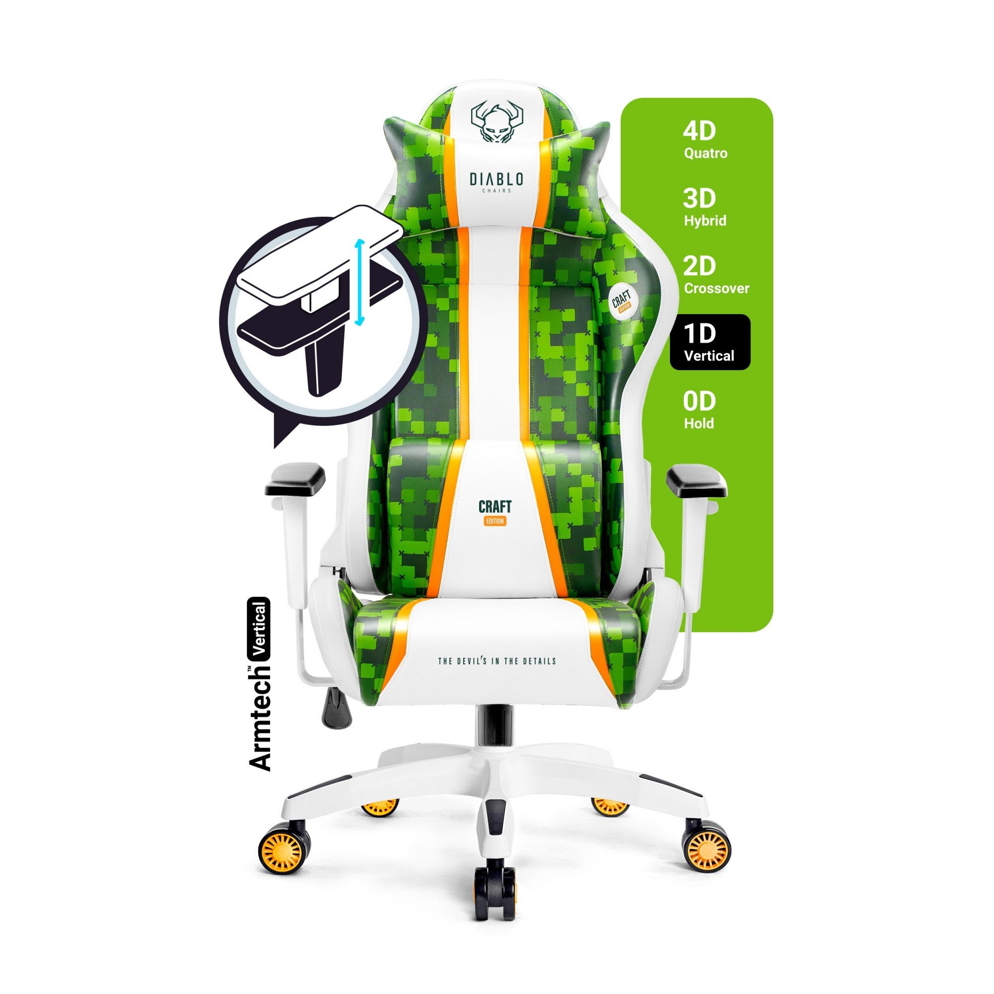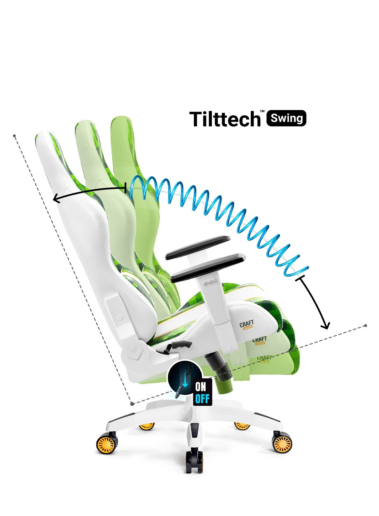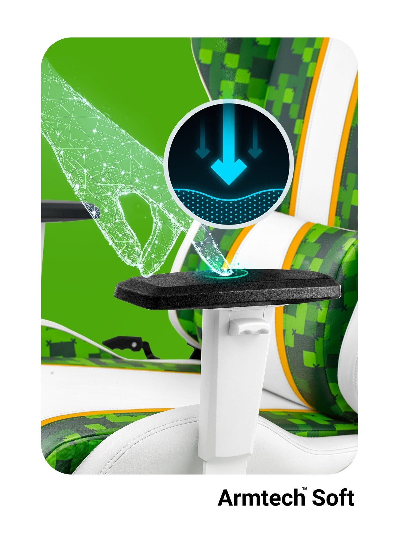 Bílo-zelená kombinace barev dodá vašemu hernímu koutku energii a styl. Impozantní silueta křesla přitahuje pozornost a vyvolává herní emoce, zatímco masivní základna a charakteristická loga doplňují celkový dojem. Craft Edition je zkrátka jedinečný model, který vás odliší od ostatních.