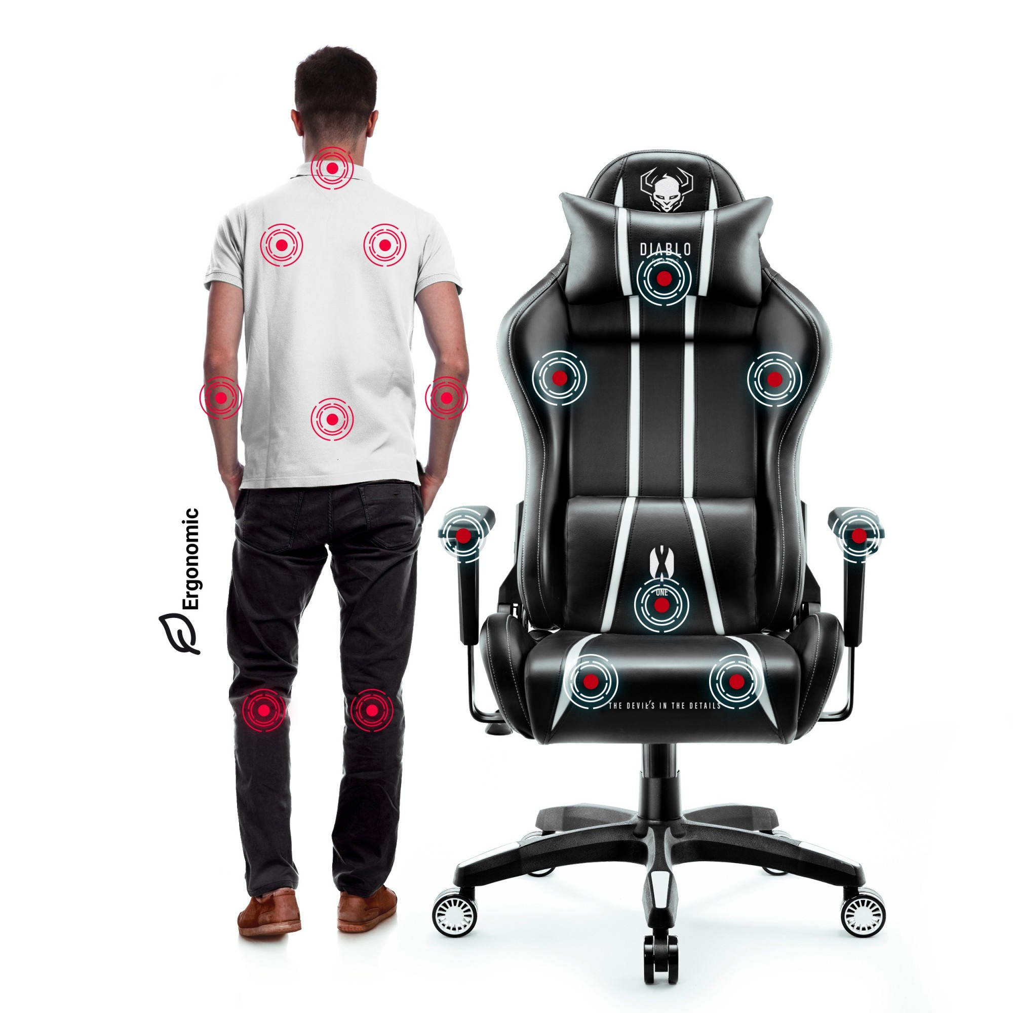 Herní křeslo X-ONE 2.0 ČERNO-BÍLÝ: NORMÁLNÍ VELIKOST