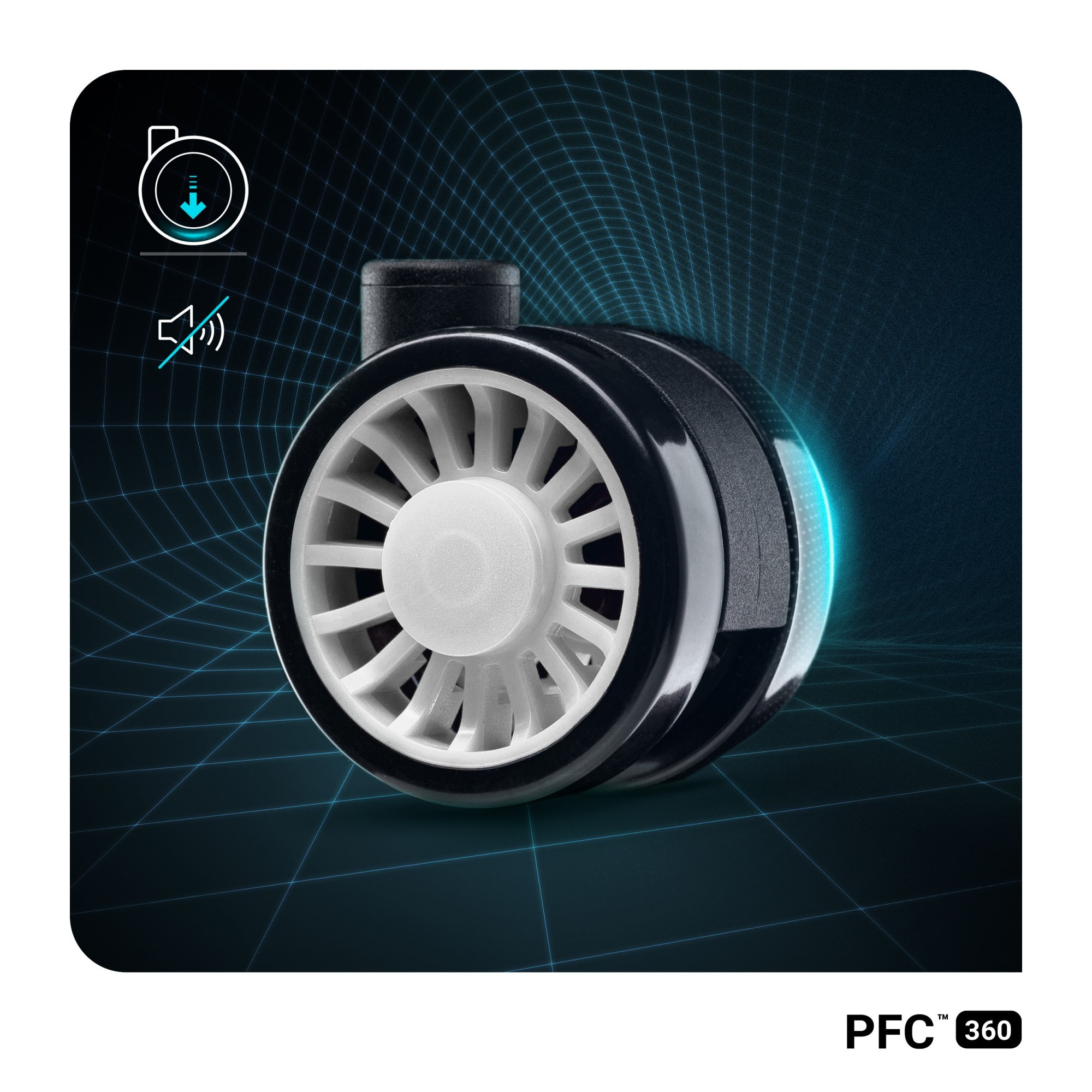 Nyní se můžete cítit jistě a pohodlně i při intenzivních pohybech nebo houpání. Spolehlivý zvedák 4. třídy zajišťuje vynikající odpružení díky vestavěnému mechanismu Air Damper™ System. Kolečka PFC™360 o průměru 75 mm jsou vybavena ráfky a jejich kaučukový povlak dokonale ochrání povrch podlahy ve vašem pokoji nebo kanceláři před vznikem škrábanců.