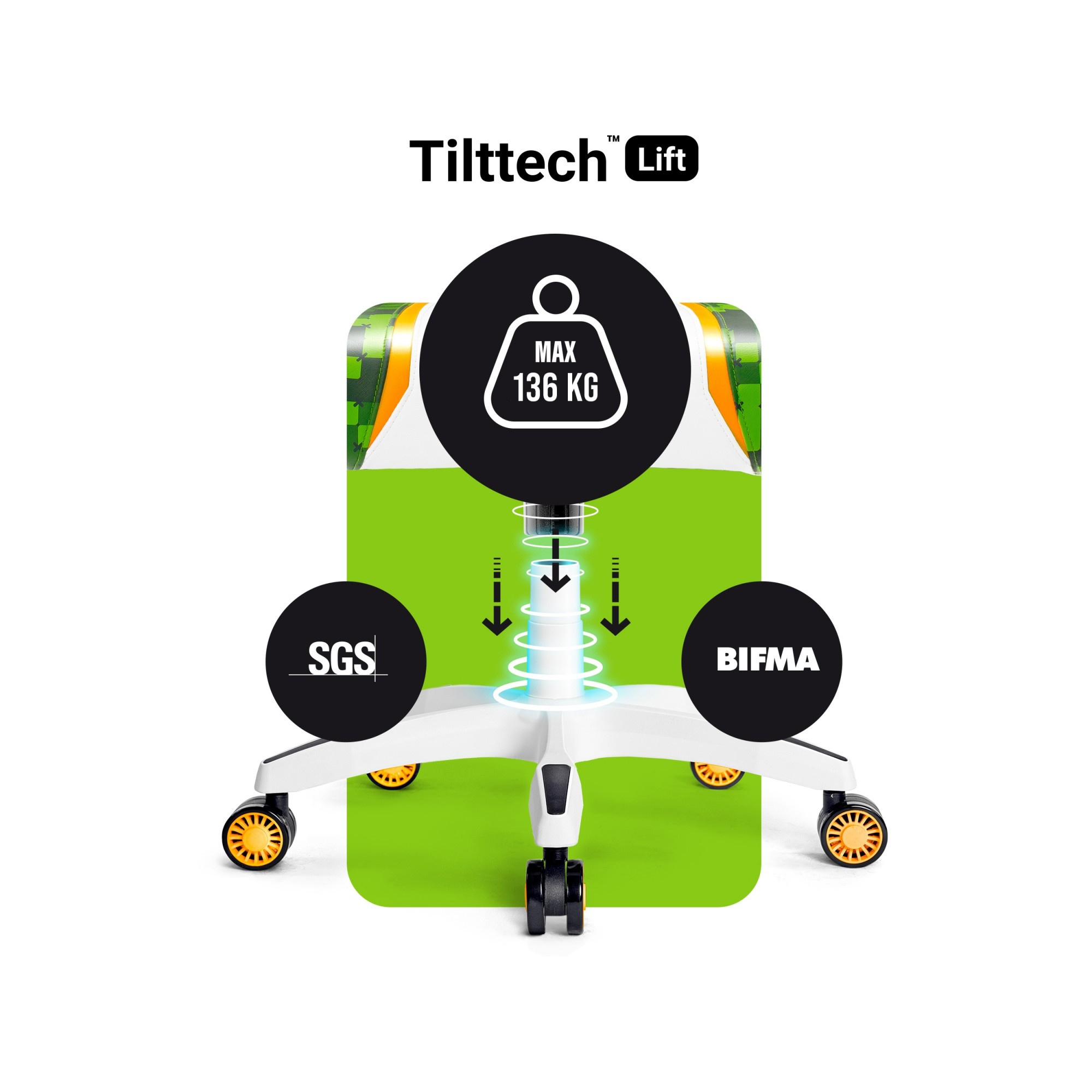 - Tilttech™ Gear: Nakloňte opěradlo až do úhlu 140° a zablokujte ho v libovolné poloze. Získejte optimální podporu a pohodlí v každé situaci, ať už hrajete, pracujete nebo odpočíváte.