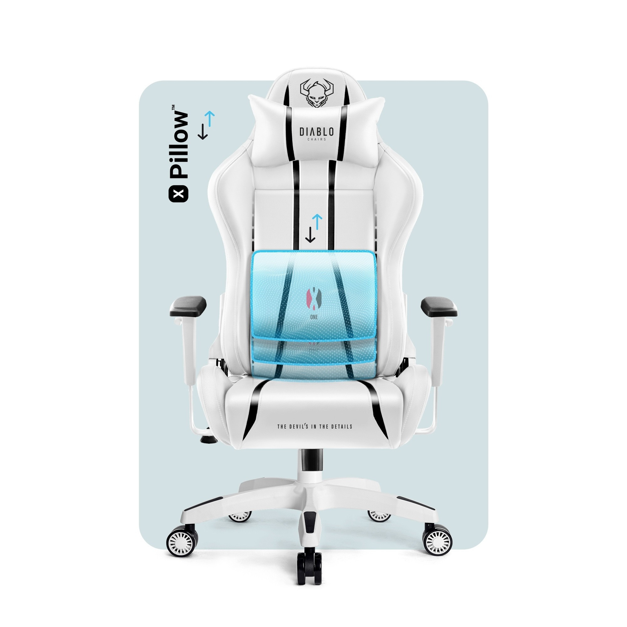 X-One 2.0 Small se pyšní jedinečným designem One Vision™ Design, který kombinuje sportovní eleganci s moderním stylem. Výrazné emblémy a bílo-černá barevná kombinace dodají vašemu hernímu koutku osobitý charakter.
