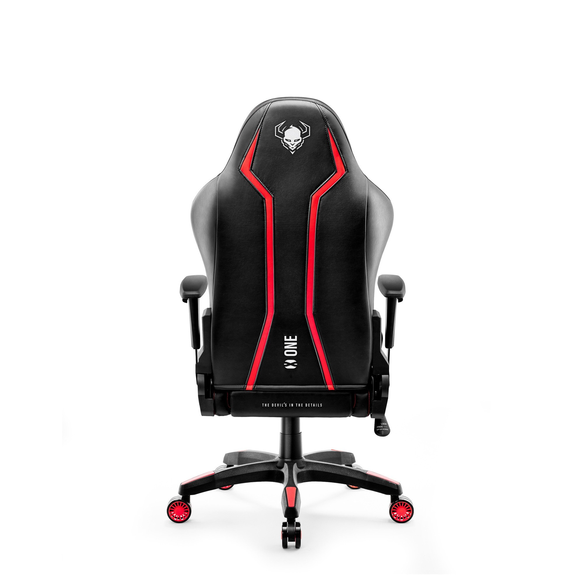 Pevná, zesílená konstrukce, odolné komponenty a spolehlivá pětiramenná základna činí z malého černo-červeného otočného křesla X-One 2.0 zajistí bezpečnou a stabilní pozici, i při houpání nebo intenzivních pohybech.