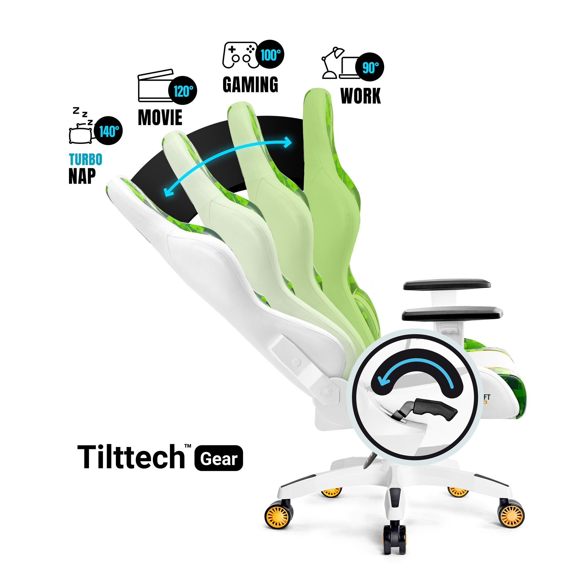 - Tilttech™ Gear: Přizpůsobte si úhel sklonu opěradla pomocí mechanismu Tilttech™ Gear. Najděte si ideální polohu pro práci, hraní nebo odpočinek.