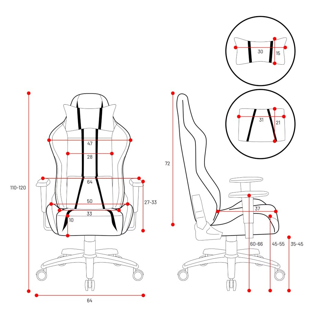 - Ergonomické polštáře s možností nastavení: Nastavitelná opěrka hlavy a bederní podložka vám umožní přizpůsobit si židli tak, aby poskytovala optimální podporu pro krční a bederní páteř.