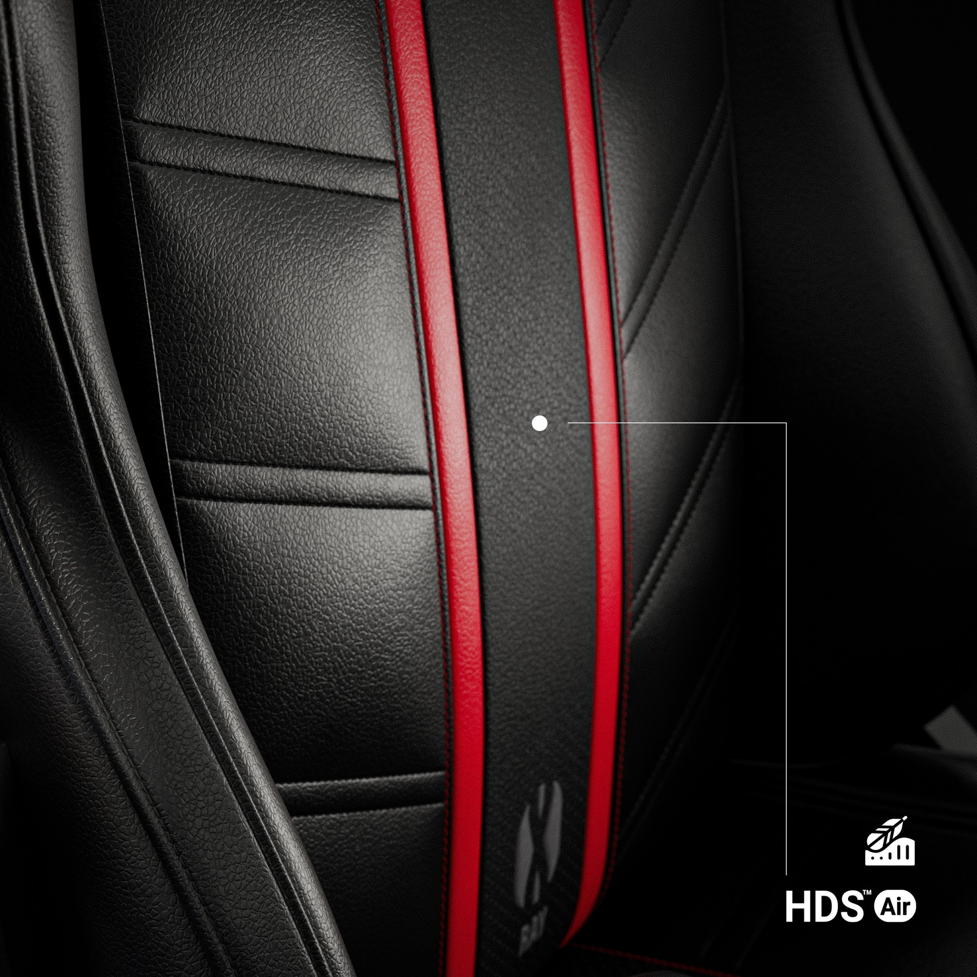 Křeslo je potaženo kombinací dvou druhů ekokůže – spolehlivé HDS™ a prodyšné HDS™ Air. Tato kombinace zajišťuje maximální pohodlí i během horkých dnů a zároveň dodává křeslu luxusní vzhled. Zesílené nitě Nylon™ LV3 a elegantní prošívání udržují čalounění v dokonalém napětí a zaručují dlouhou životnost.