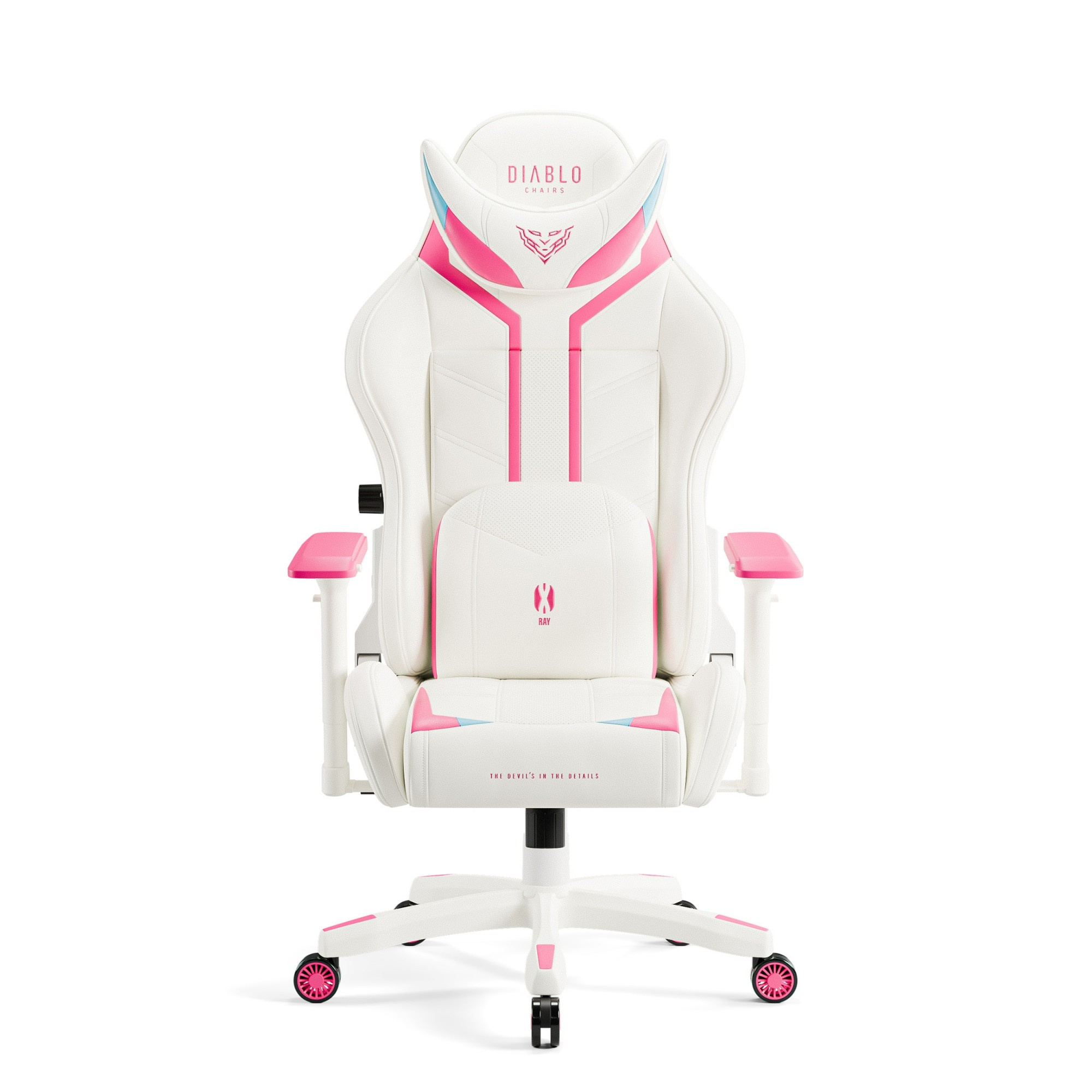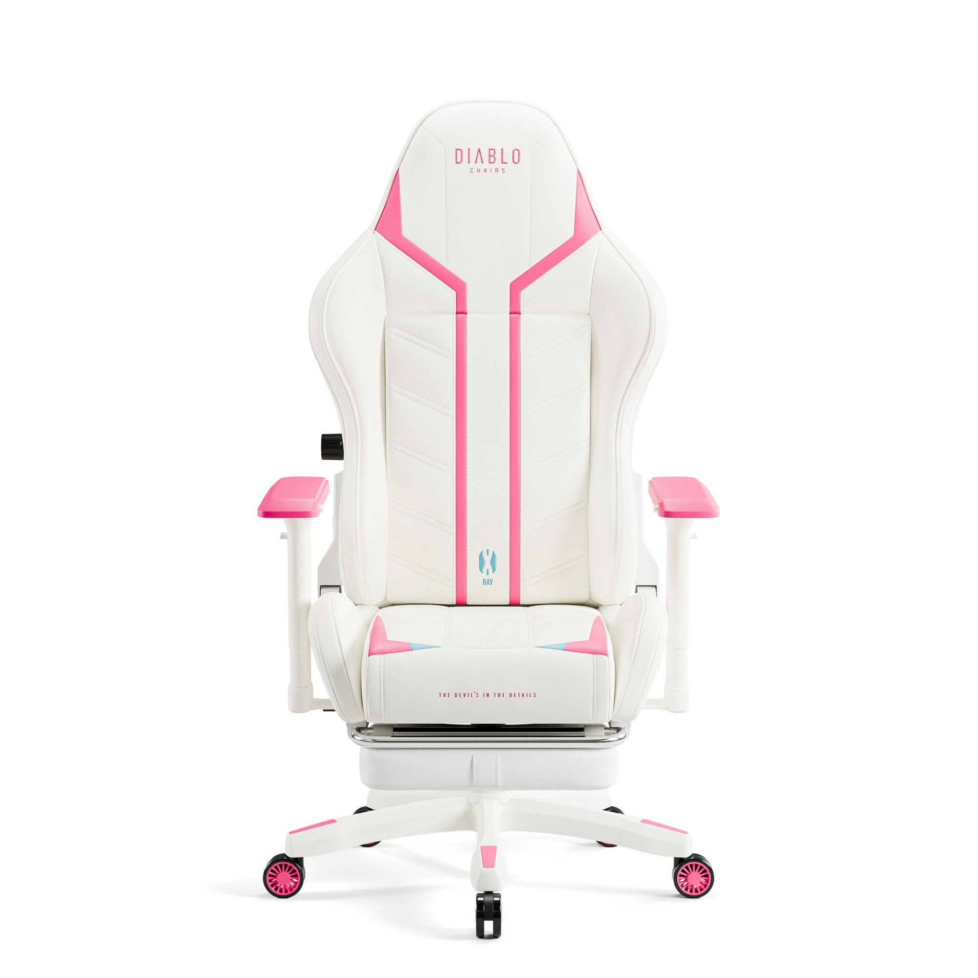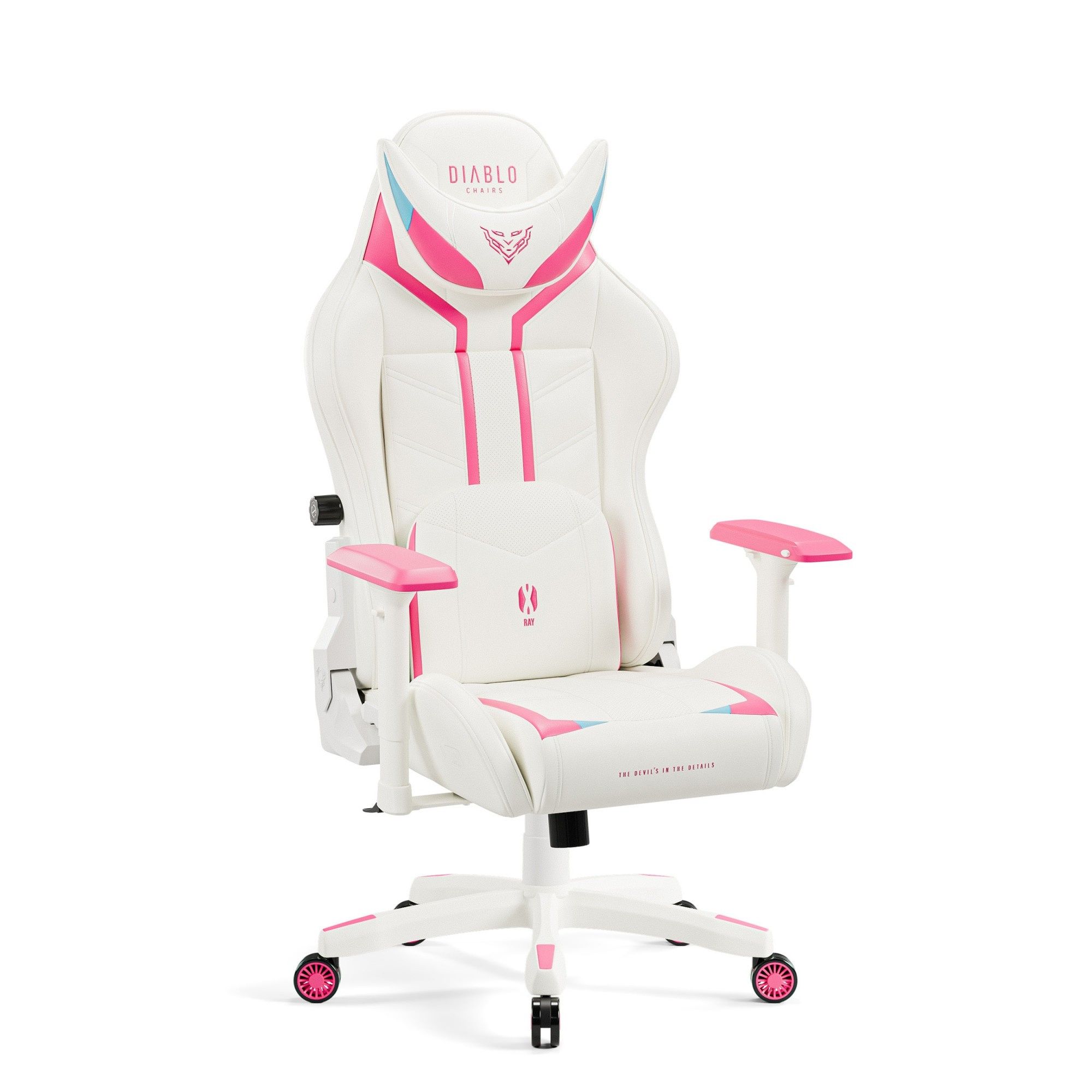 X-Ray 2.0 je ztělesněním herního stylu. Impozantní silueta, kombinace bílé barvy s výraznými růžovými a modrými prvky a elegantní výšivky loga – to vše z něj dělá nepřehlédnutelný kousek nábytku. Ukaž všem, že máš vkus a styl!