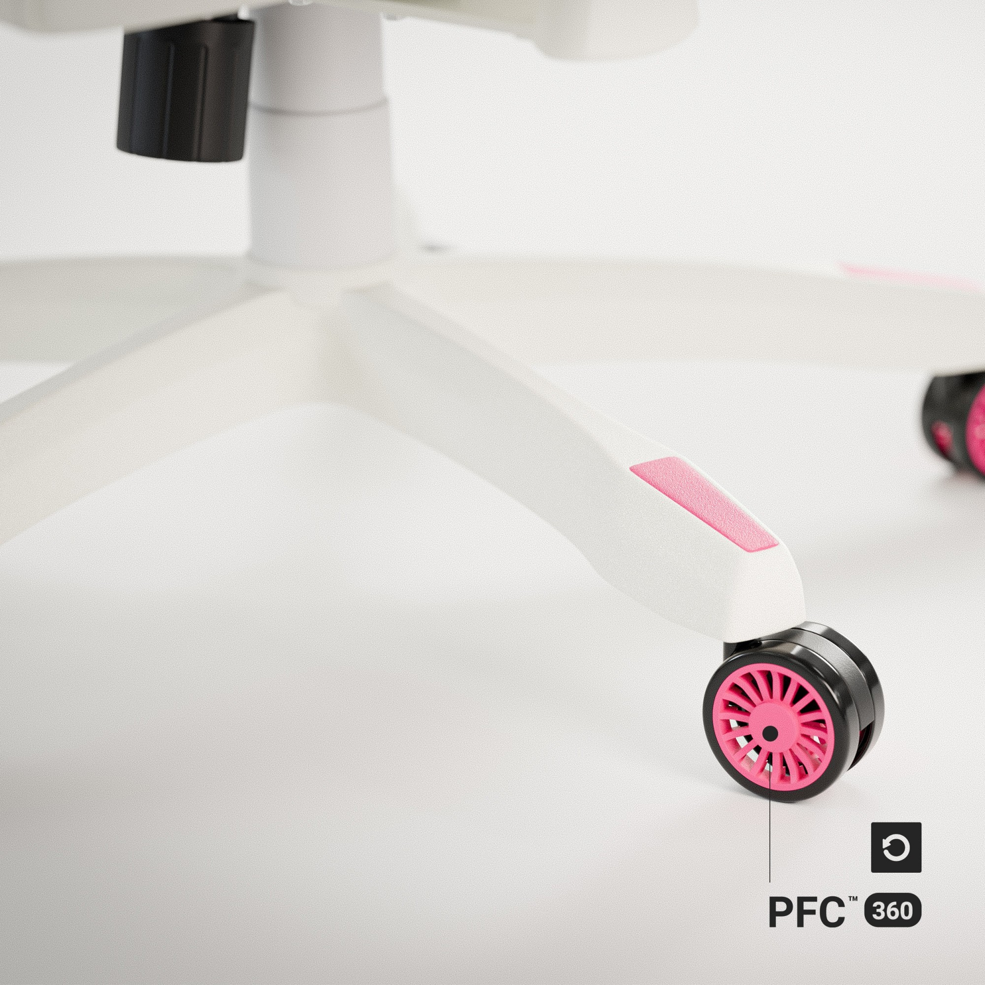 A díky kaučukovým kolečkům PFC™360 se můžeš po pokoji pohybovat bez obav o poškrábání podlahy.