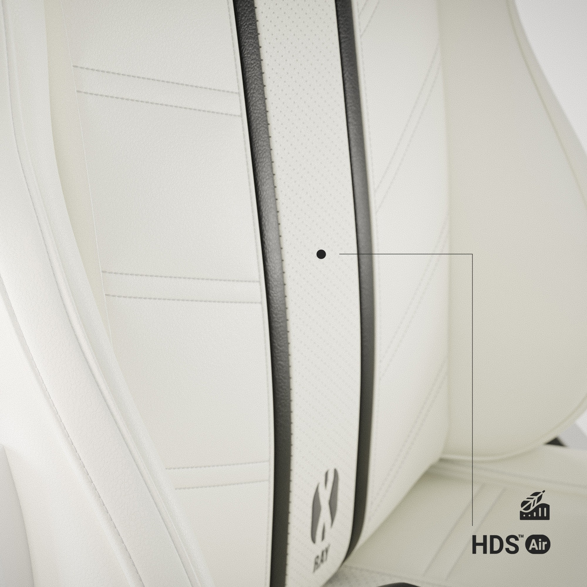 X-Ray 2.0 je vyrobeno z prémiových materiálů, které zaručují dlouhou životnost a maximální komfort. Kombinace ekokůže HDS™ a perforované ekokůže HDS™ Air zajišťuje prodyšnost a odolnost. Estetické švy, provedené zesílenými nitěmi Nylon™ LV3, dodávají křeslu luxusní vzhled a zaručují jeho dlouhou životnost.