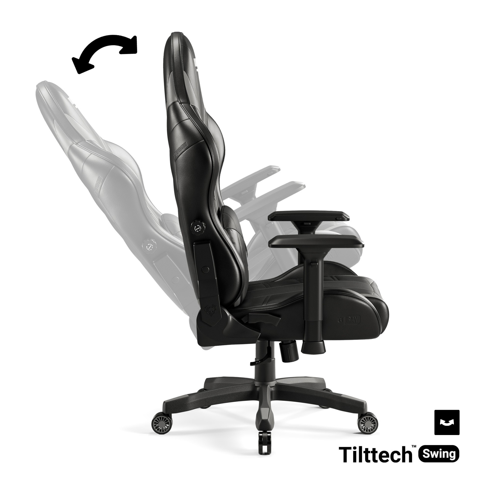 Systém Tilttech™ Gear umožňuje plynulé nastavení úhlu sklonu opěradla až do téměř vodorovné polohy. Funkce Tilttech™ Swing vám umožní relaxovat a uvolnit se během přestávek od hraní nebo práce.