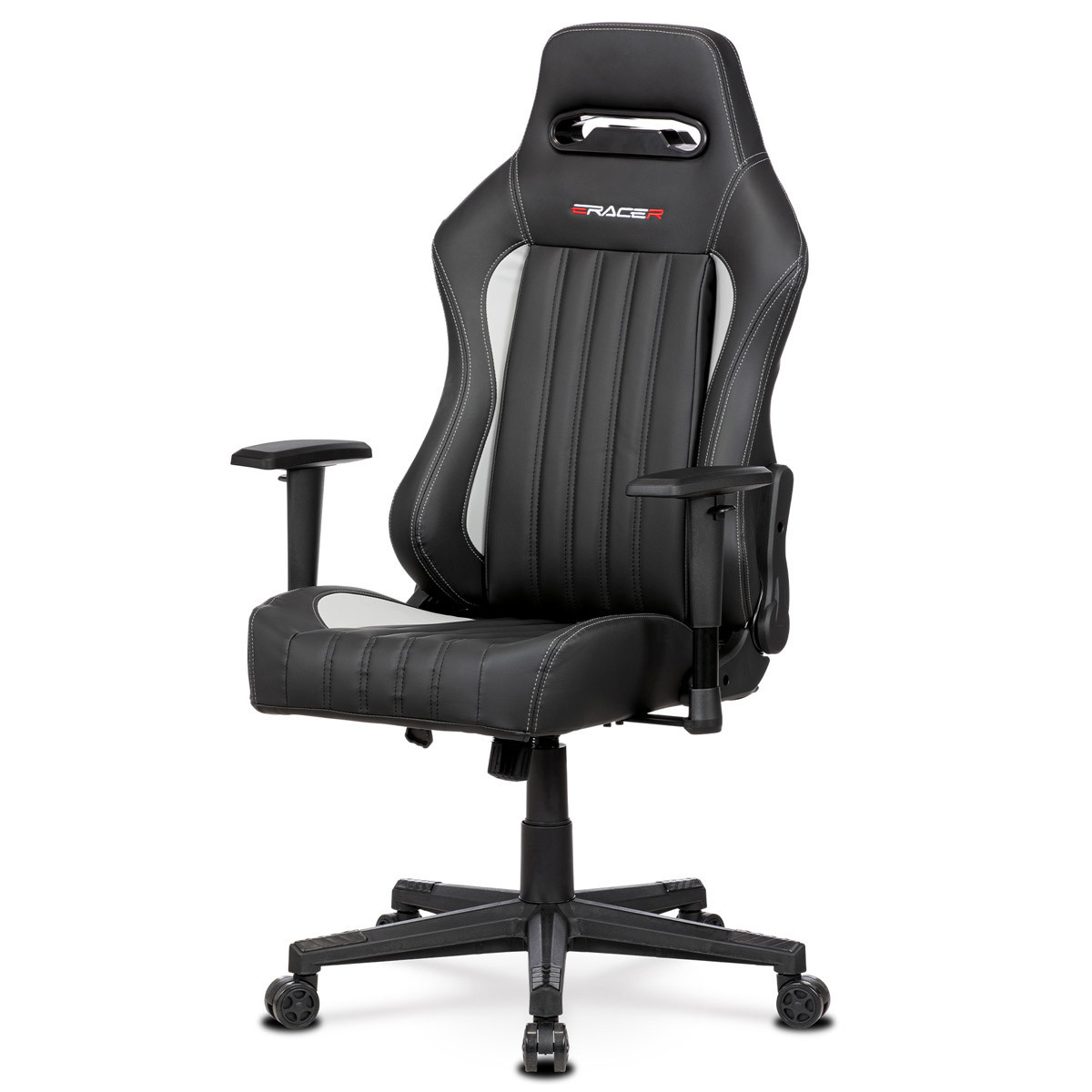 Herní křeslo E-RACER, potah šedá a černá ekokůže, HM, opěrák 90°-180°