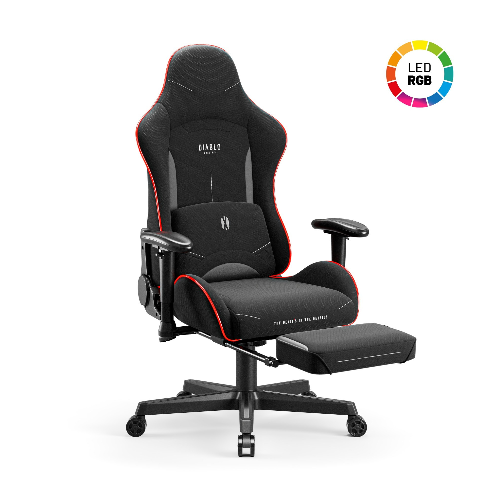 - RGB LED Osvětlení: Vytvořte si jedinečnou atmosféru s dynamickým RGB osvětlením. Vyberte si z mnoha barev a režimů a přizpůsobte si křeslo svému hernímu stylu.