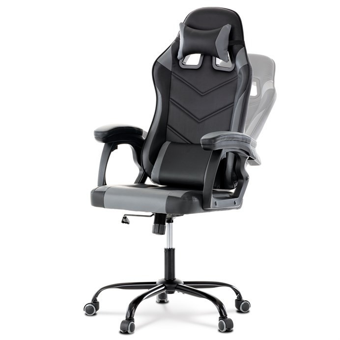 Herní křeslo, houpací mechanismus, šedá ekokůže, KA-L626 GREY