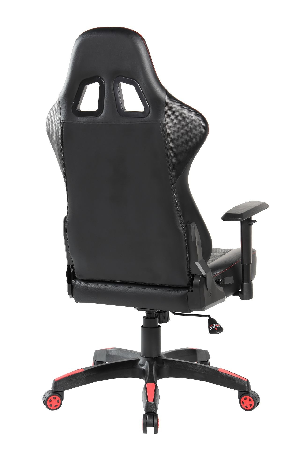 Rozměry: - celková výška: 126-136 cm - výška sedáku: 44-54 cm - výška područek: 70-80 cm - rozsah výšky područek: 7 cm - výška opěradla: 83 cm - šířka opěradla: nahoře 59 - dole 46 - celková šířka: 66 cm - šířka sedáku: 55 cm - hloubka sedáku: 41 cm Materiál: - čalounění: ekokůže - základna: plast - kolečka: plast Barva: - sedák + opěradlo: černo-červené - základna: černo-červená Další: - úhel náklonu: 120° - mechanismus Tilt