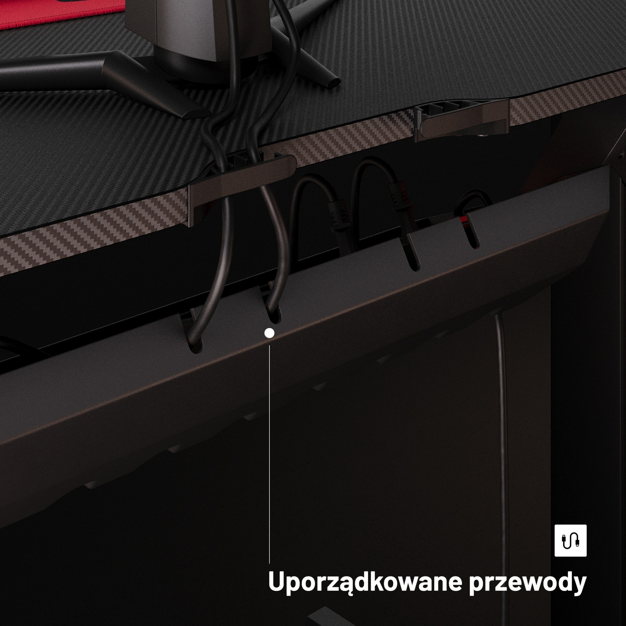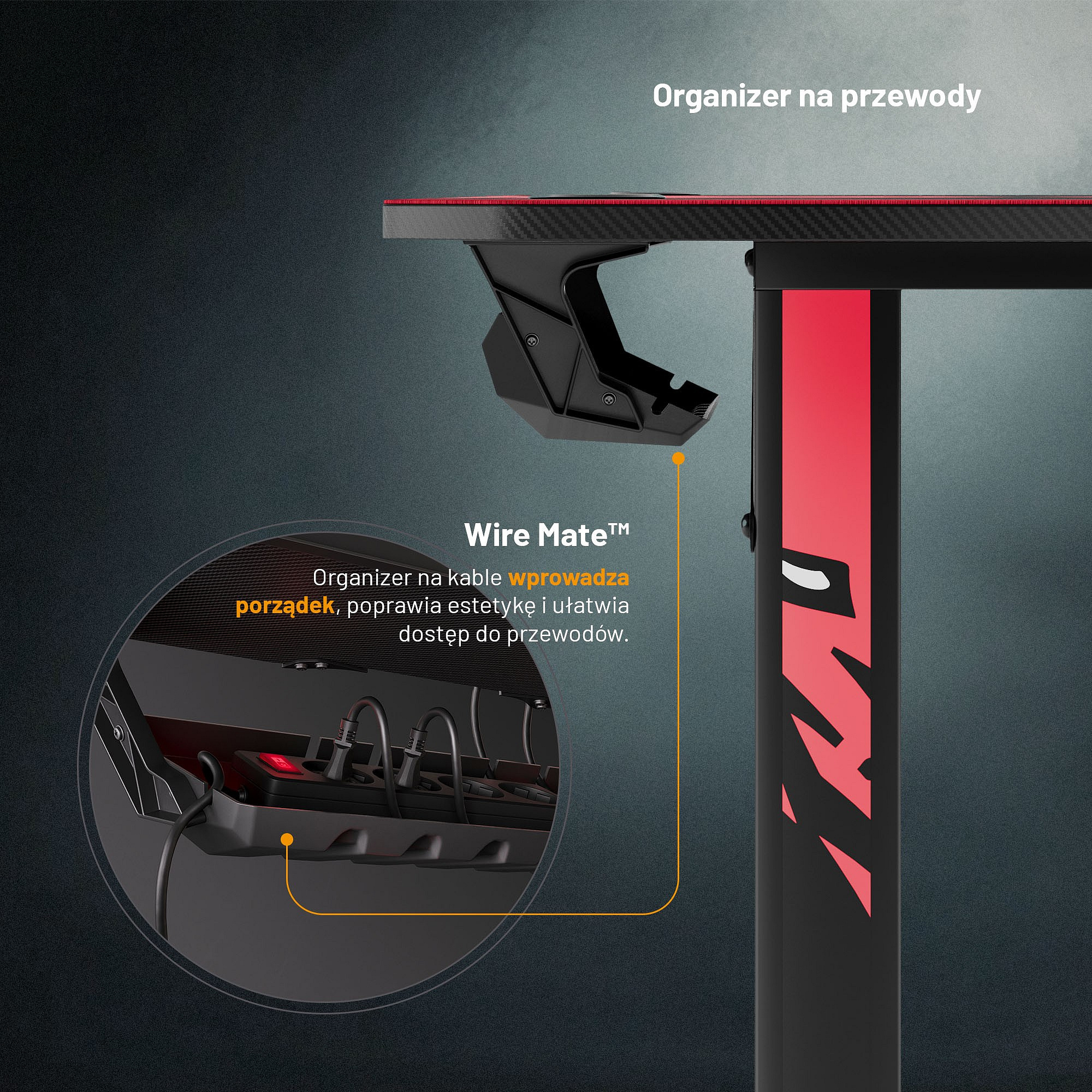 Díky tomuto promyšlenému systému bude správa kabelů hračkou, a to i v případě malého počítačového stolu. Udržujte svůj prostor čistý a uspořádaný a soustřeďte se na to, co je důležité – na hru!
