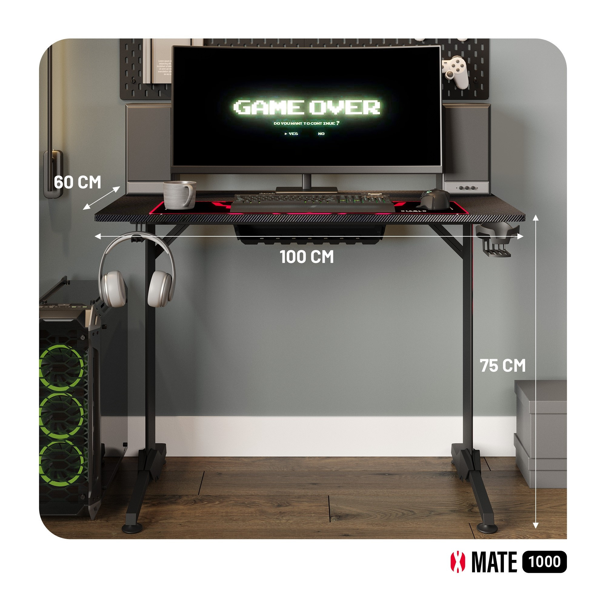 Sníte o dokonalém herním stanovišti, ale trápí vás nedostatek prostoru? Představujeme X-Mate 1000, herní stůl, který dokazuje, že i na malém prostoru se dá vytvořit epické herní doupě. Tento kompaktní stůl o rozměrech pouhých 100 cm na šířku a 60 cm do hloubky se snadno vejde i do té nejmenší místnosti, a přesto nabízí překvapivé množství funkcí a komfortu.