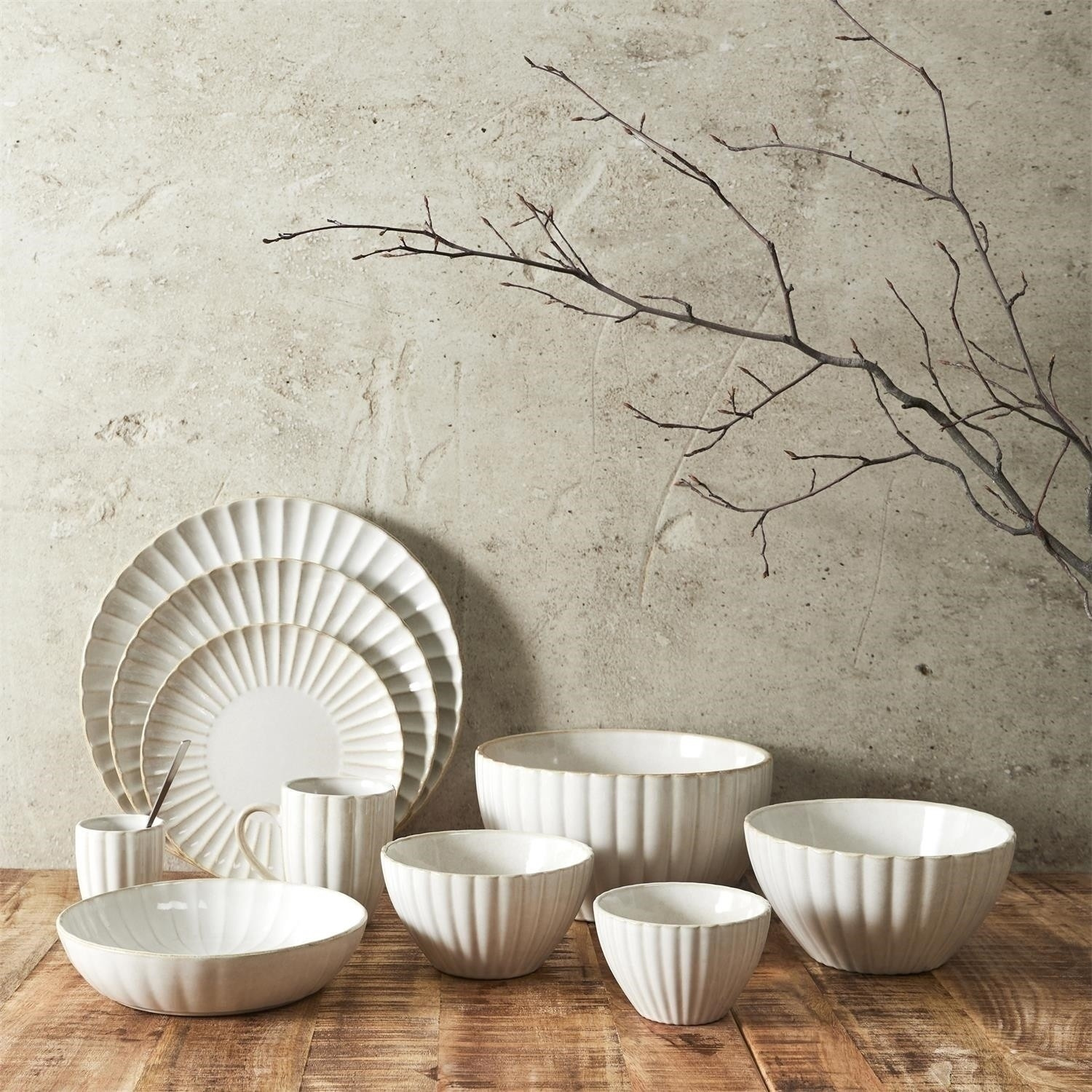 Hluboký talíř o průměru 20 cm Vlora je umělecké dílo samo o sobě. Zajímavý tvar, jemná béžová barva činí stolní nádobí Vloga jemným a zároveň nadčasovým. Rýhované okraje talíře trochu připomínají tvar mořské mušle. Takerz lze mýt v myčce, lze používat v mikrovlnné troubě. Nelze používat talíř v troubě a v mrazáku. Materiál: keramika