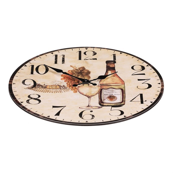 Hodiny nástěnné - pr. 34 cm, MDF, bílé víno