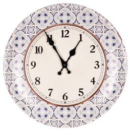 Hodiny nástěnné - pr. 35 cm, kovové, modro-bílé ornamenty