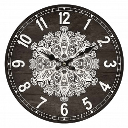 Hodiny nástěnné - pr. 34 cm, MDF, motiv krajkové mandaly