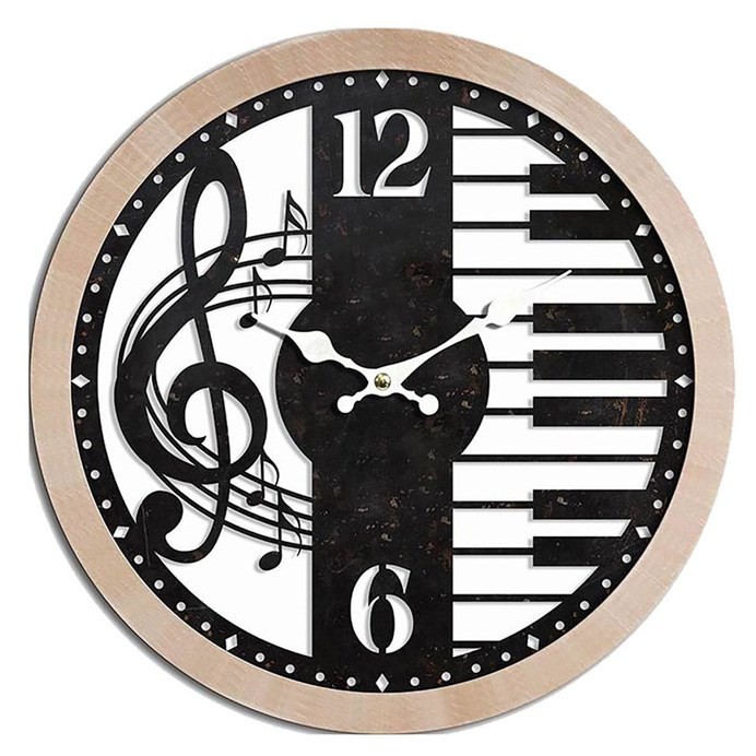 Hodiny nástěnné - pr. 60 cm, MDF a kov, houslový klíč a klávesy