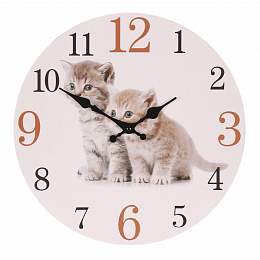 Hodiny nástěnné - pr. 34 cm, MDF, zvídavá koťata