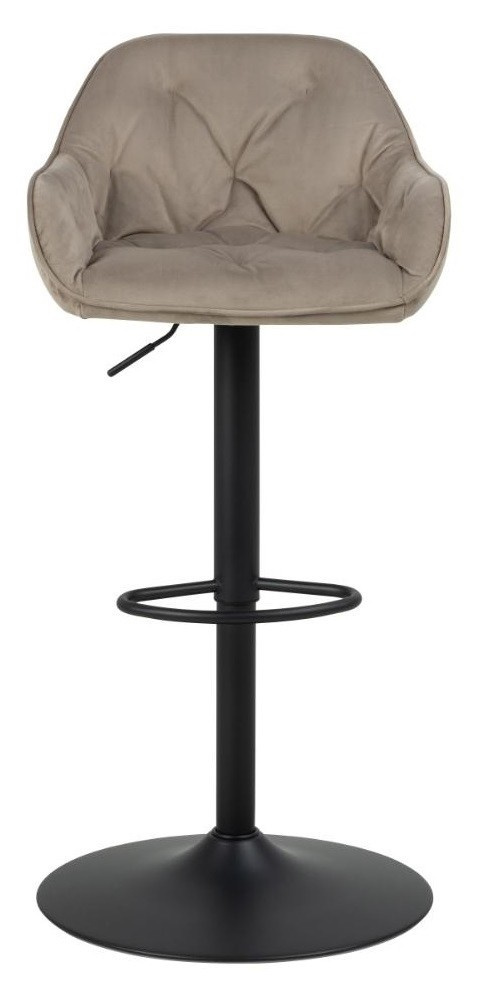 Ať už si ráno raději dáte kávu, nebo hledáte místo na odpolední svačinu, tato barová stolička s nastavitelnou výškou je ideální pro takové scénáře. Sedák je čalouněný měkkou béžovou sametovou látkou a zdobený jemným prošíváním, které dodává romantický půvab. Doplněný o černě práškově lakovanou ocelovou základnu ve tvaru trumpety, barová stolička je stabilní a poskytuje příjemné zážitky. Barová stolička s jemným prošíváním. Vyrobený z nehořlavých materiálů. Čalouněný béžovou sametovou tkaninou se zajímavou texturou a příjemný na dotek. Černá, práškově lakovaná kovová základna ve tvaru trumpety. Výšku sedadla lze nastavit v rozmezí 63-84 cm díky plynovému pístu. Otočný a vybavený podnožkou. Výška opěradla: 26 cm Max. výška barové židle 109 cm, Min. vys. hokera: 88 cm Rozměry kartonu: 57x53x61 cm Max 2 ks v kartonu. Vyžaduje montáž. Maximální zatížení 110 kg