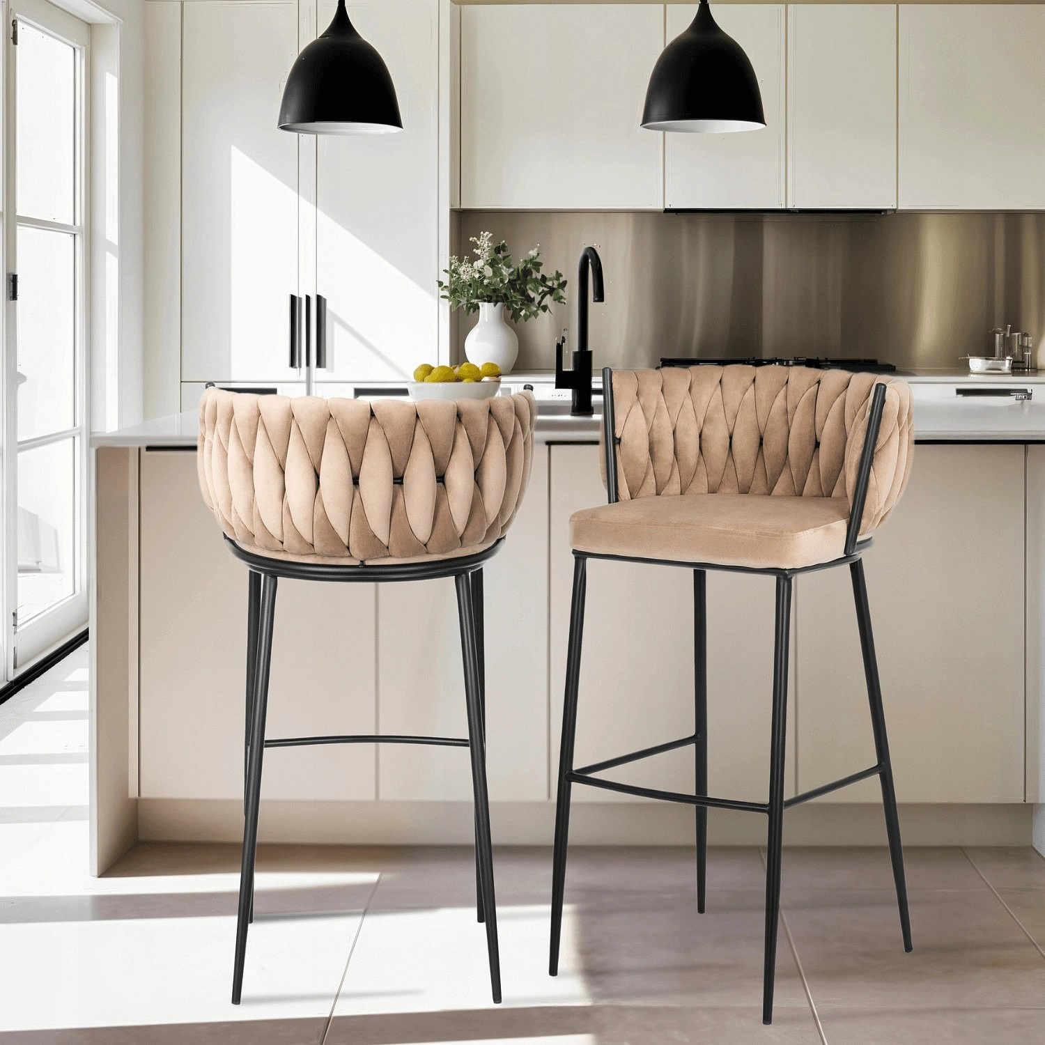 Barová židle FLORES Béžový Sametový