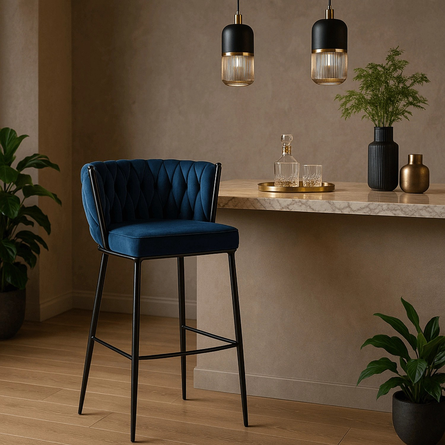 Barová židle FLORES Modrý Sametový