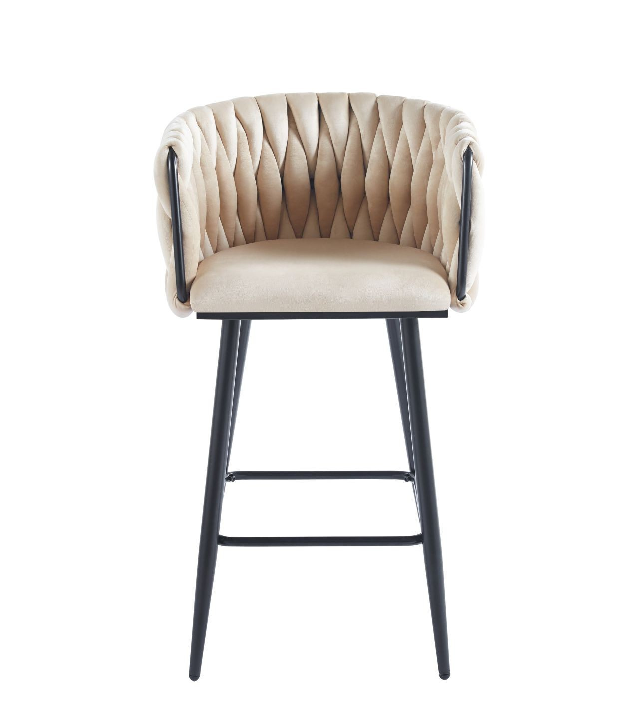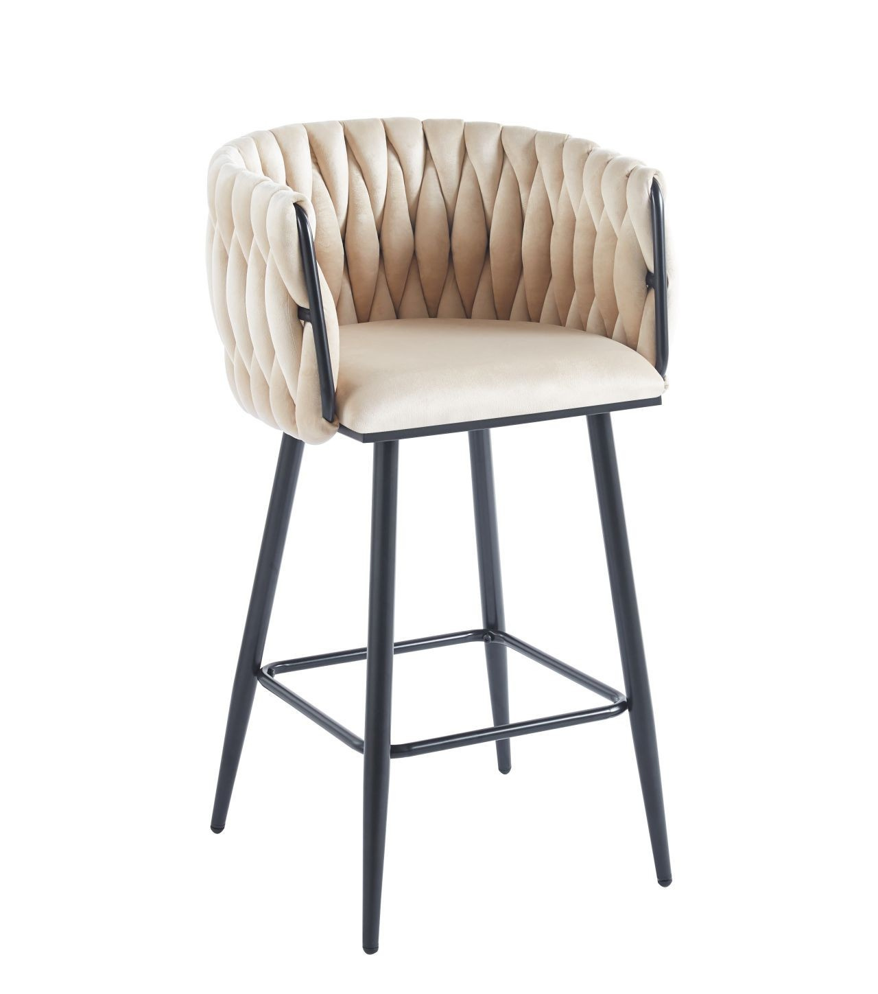 Rozměry: - šířka sedáku: 42 cm - celková šířka: 55 cm - výška sedáku: 64 cm - celková výška: 90 cm - hloubka sedáku: 43 cm - výška opěradla: 28 cm Materiál - čalounění: samet - rám: kov lakovaný práškovou barvou Barva: - sedák: béžový - rám: černý