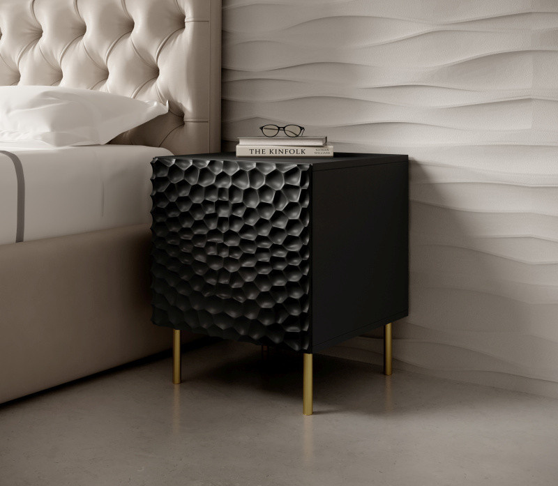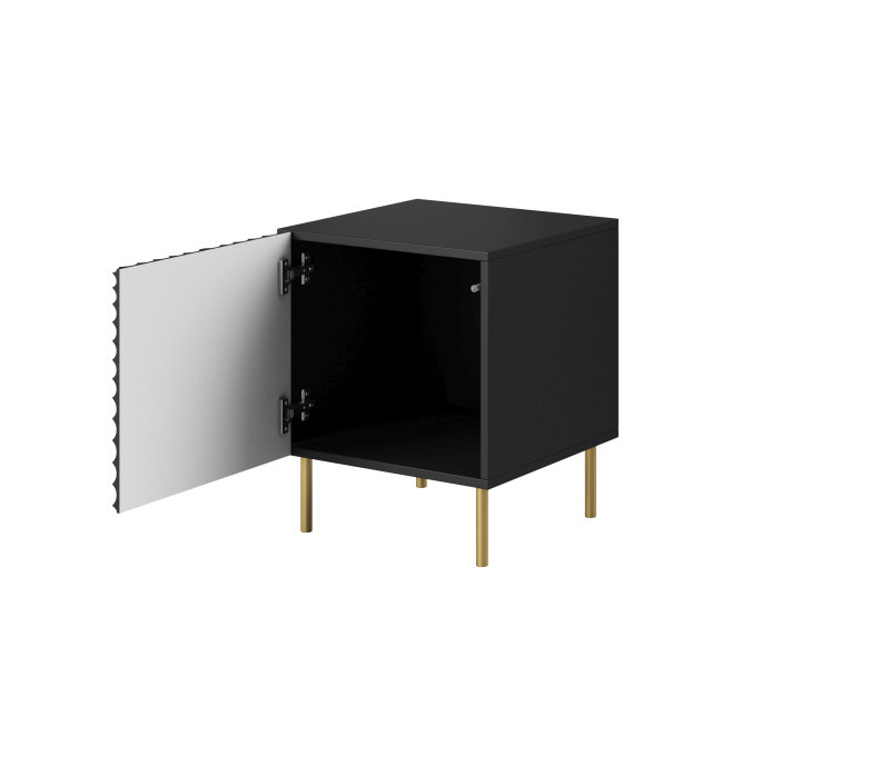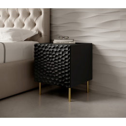 Noční stolek (2 kusy)) rozměry: š/s/g-53,5cm/44cm/40,5cm, materiál: korpus: laminovaná dřevotříska čela: MDF deska hrany: černá - PVC nožičky: kov ve zlaté barvě úchyty: žádné, systém PUSH-CLICK