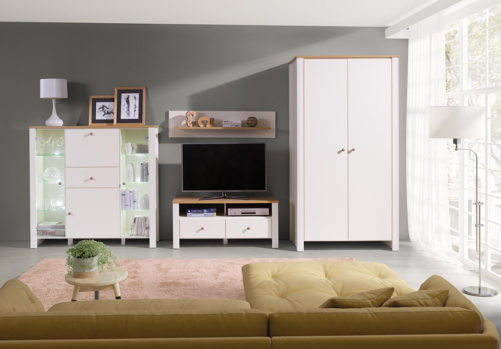 TV komoda BACARDI R15, Zlatý dub/krémová
