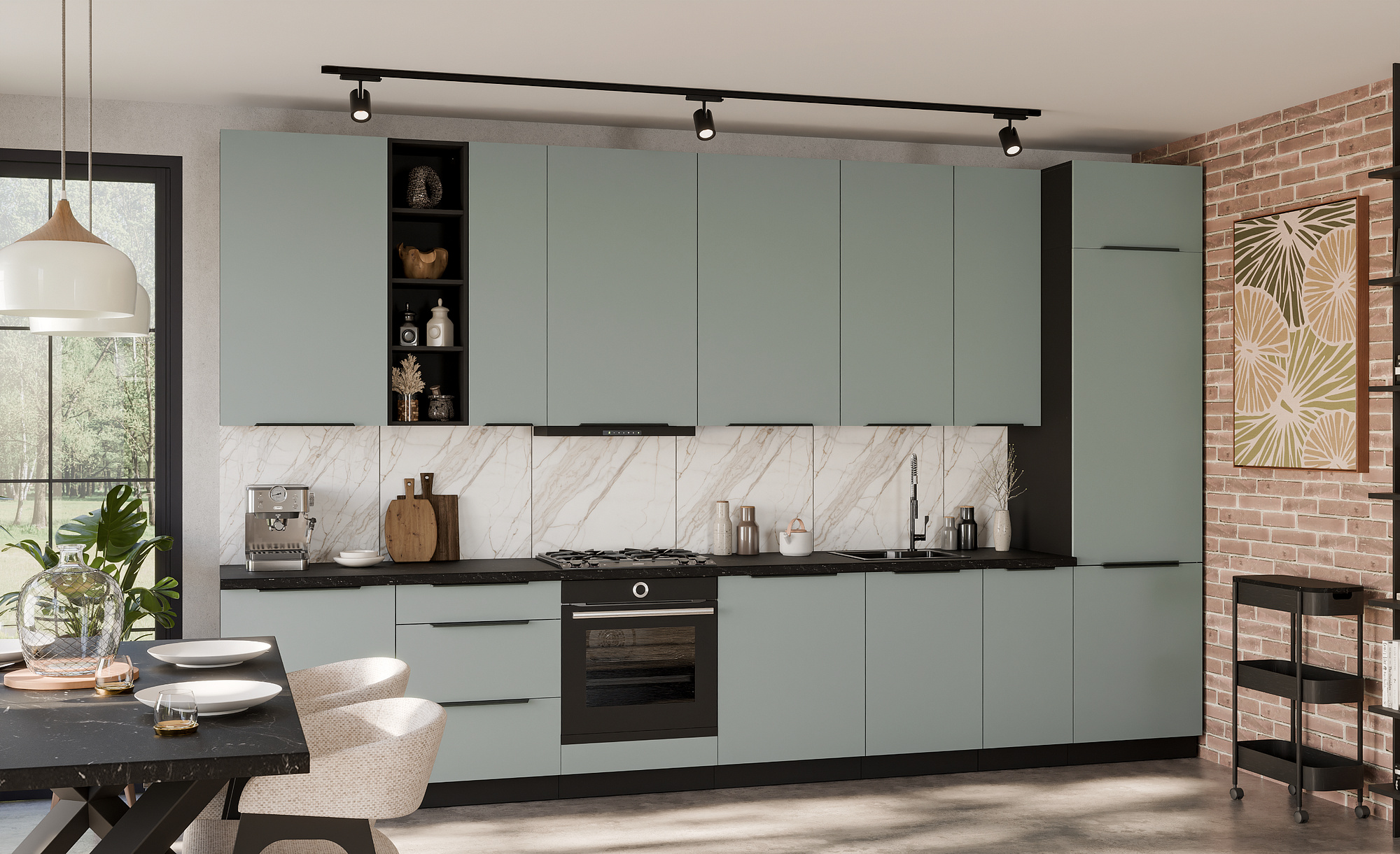 Objevte eleganci a funkčnost v jednom s kuchyňskou linkou ARIA, která se stane nepostradatelnou součástí vaší kuchyně. Tato kuchyně vyniká svým moderním designem a kvalitním zpracováním, které zaručuje dlouhou životnost a spolehlivost.