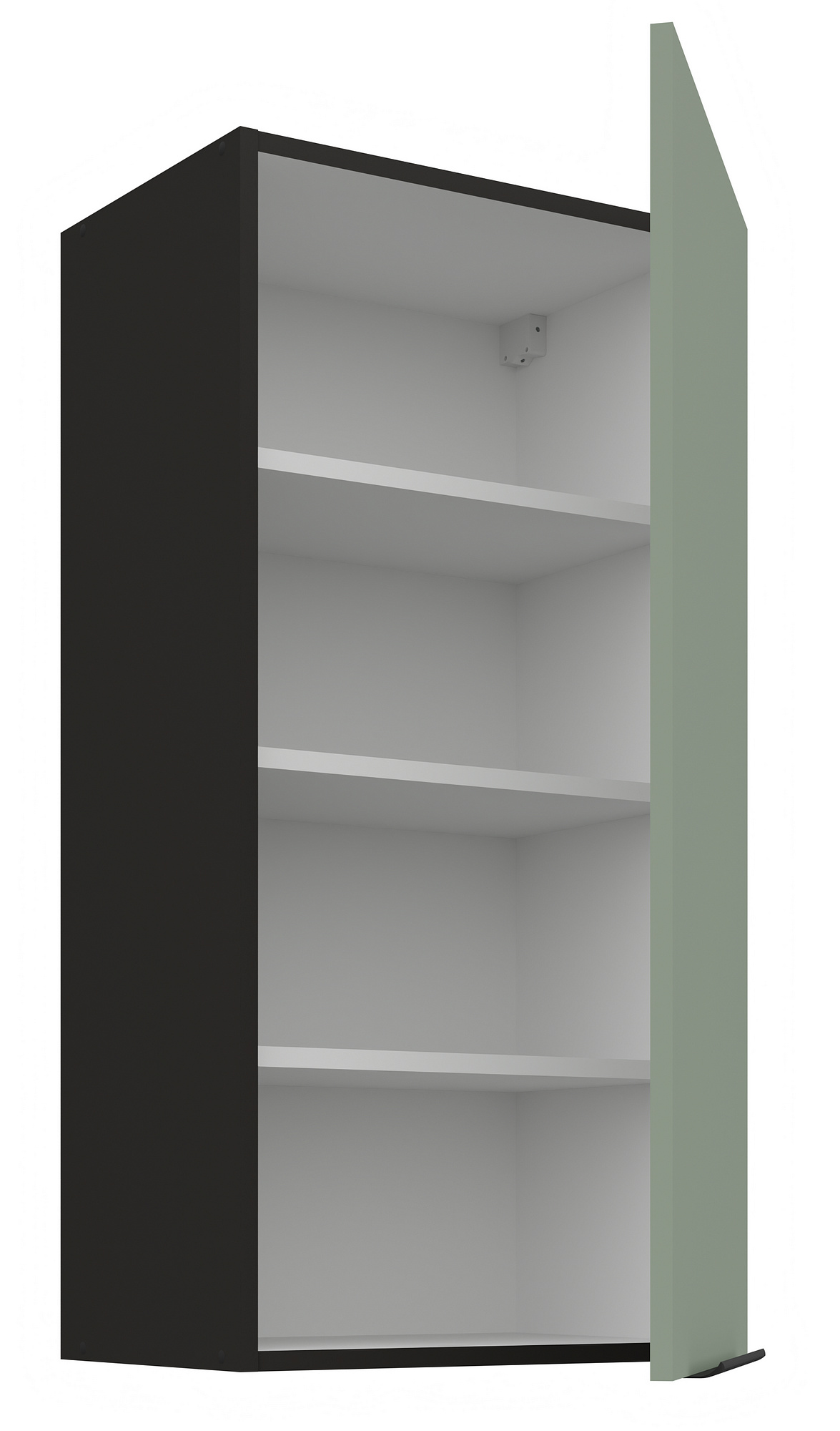 Kuchyňské skřínky ARIA jsou vybaveny černými úchyty typu UA-HEXA s roztečí 64 mm - 320 mm, vyrobenými z hliníku, které dokonale ladí s celkovým designem. Panty s tichým dovíráním přispívají k pohodlnému a tichému používání. Zadní strana skříněk je z bílého HDF materiálu o tloušťce 2,5 mm, což zajišťuje stabilitu a pevnost konstrukce.