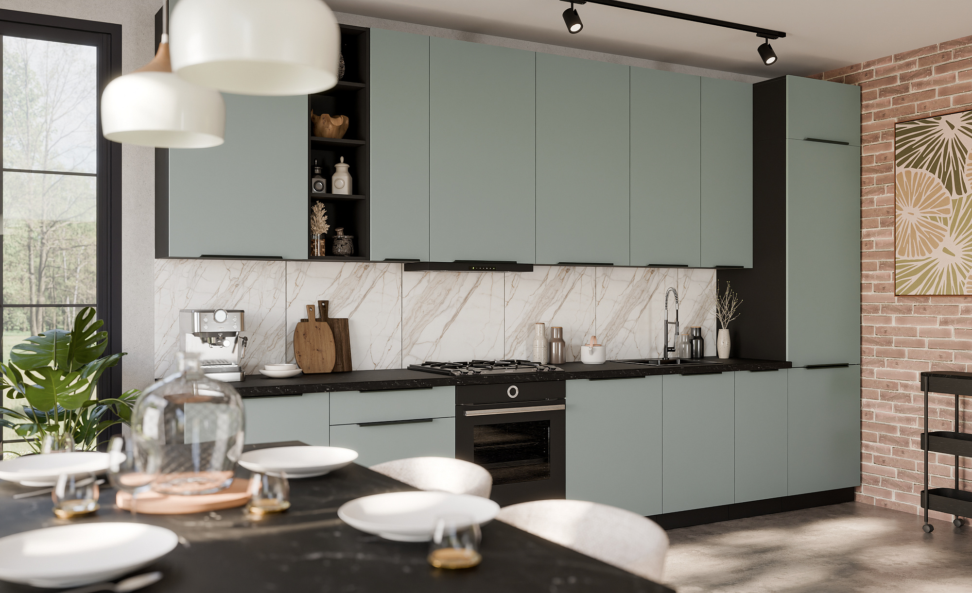 Objevte eleganci a funkčnost v jednom s kuchyňskou linkou ARIA, která se stane nepostradatelnou součástí vaší kuchyně. Tato kuchyně vyniká svým moderním designem a kvalitním zpracováním, které zaručuje dlouhou životnost a spolehlivost.