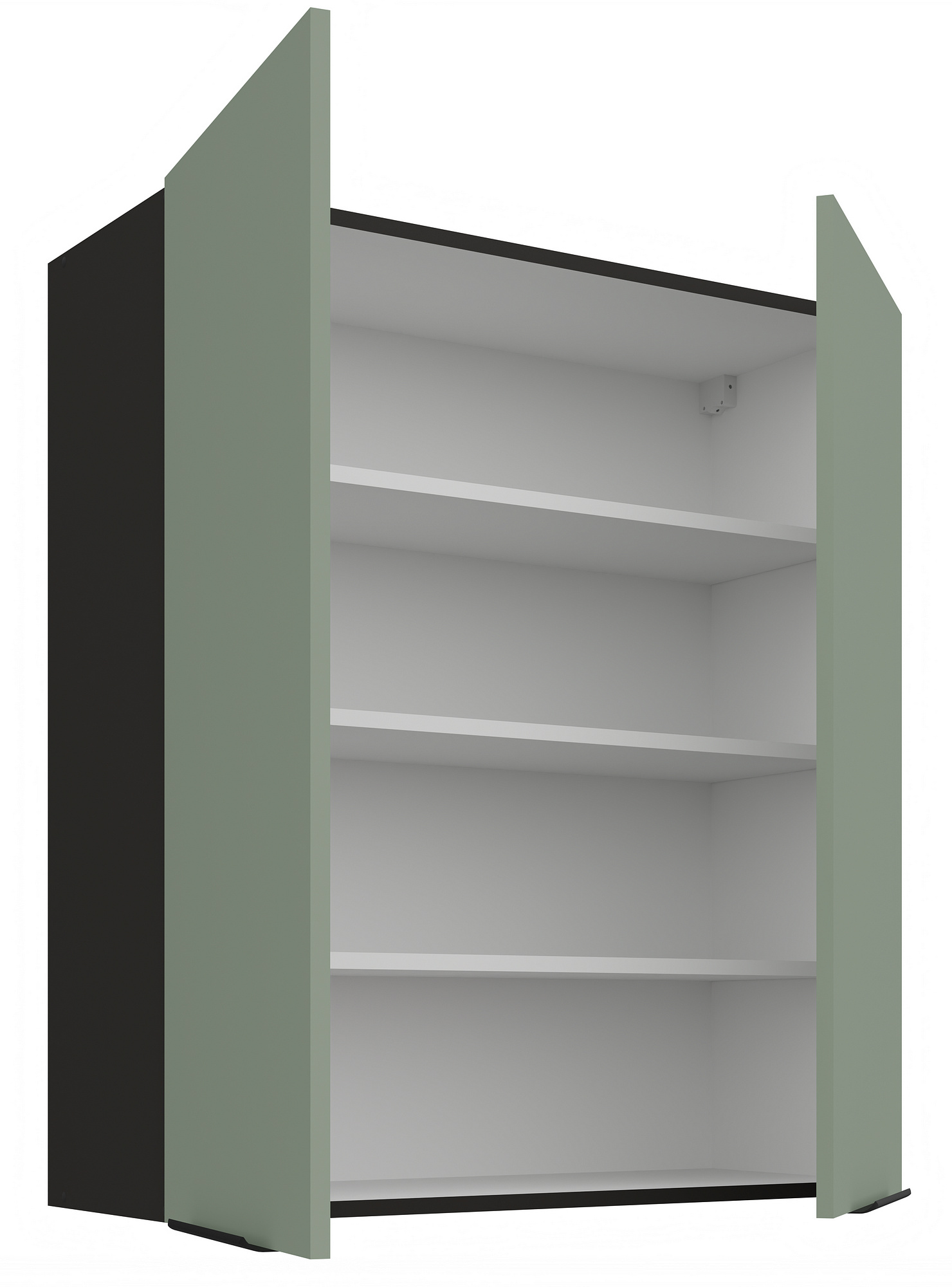 Kuchyňské skřínky ARIA jsou vybaveny černými úchyty typu UA-HEXA s roztečí 64 mm - 320 mm, vyrobenými z hliníku, které dokonale ladí s celkovým designem. Panty s tichým dovíráním přispívají k pohodlnému a tichému používání. Zadní strana skříněk je z bílého HDF materiálu o tloušťce 2,5 mm, což zajišťuje stabilitu a pevnost konstrukce.