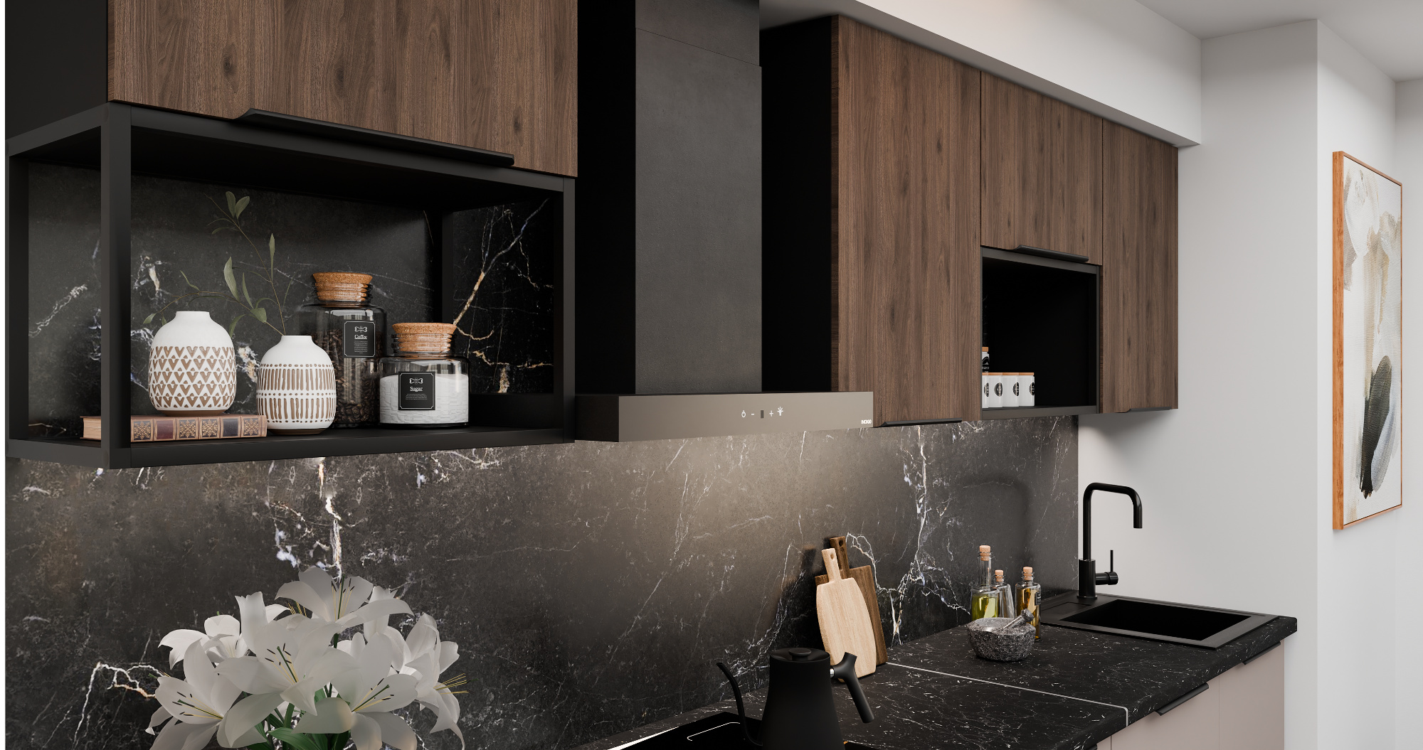 - Kuchyně ARONA - Černý mat/Kašmír
