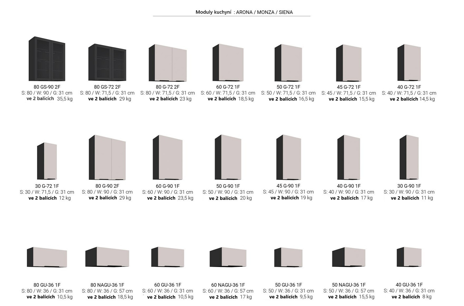 - Možnost kombinace se skřínkami z kuchyně Siena a Arona