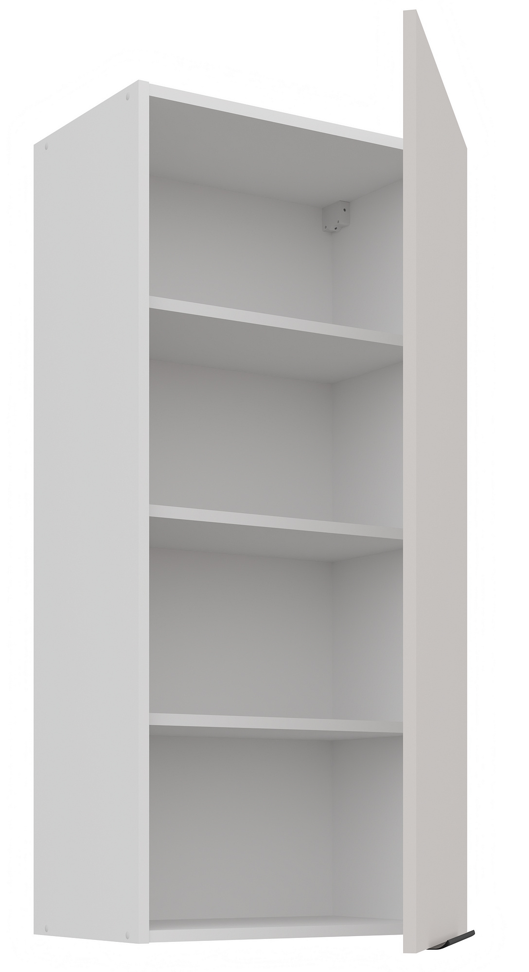 Dvířka skříňky jsou universální, což znamená, že je můžete namontovat jako pravé nebo levé, podle vašich potřeb a dispozice kuchyně. Vnitřek skříňky je v bílém provedení, což zajišťuje čistý a svěží vzhled.
