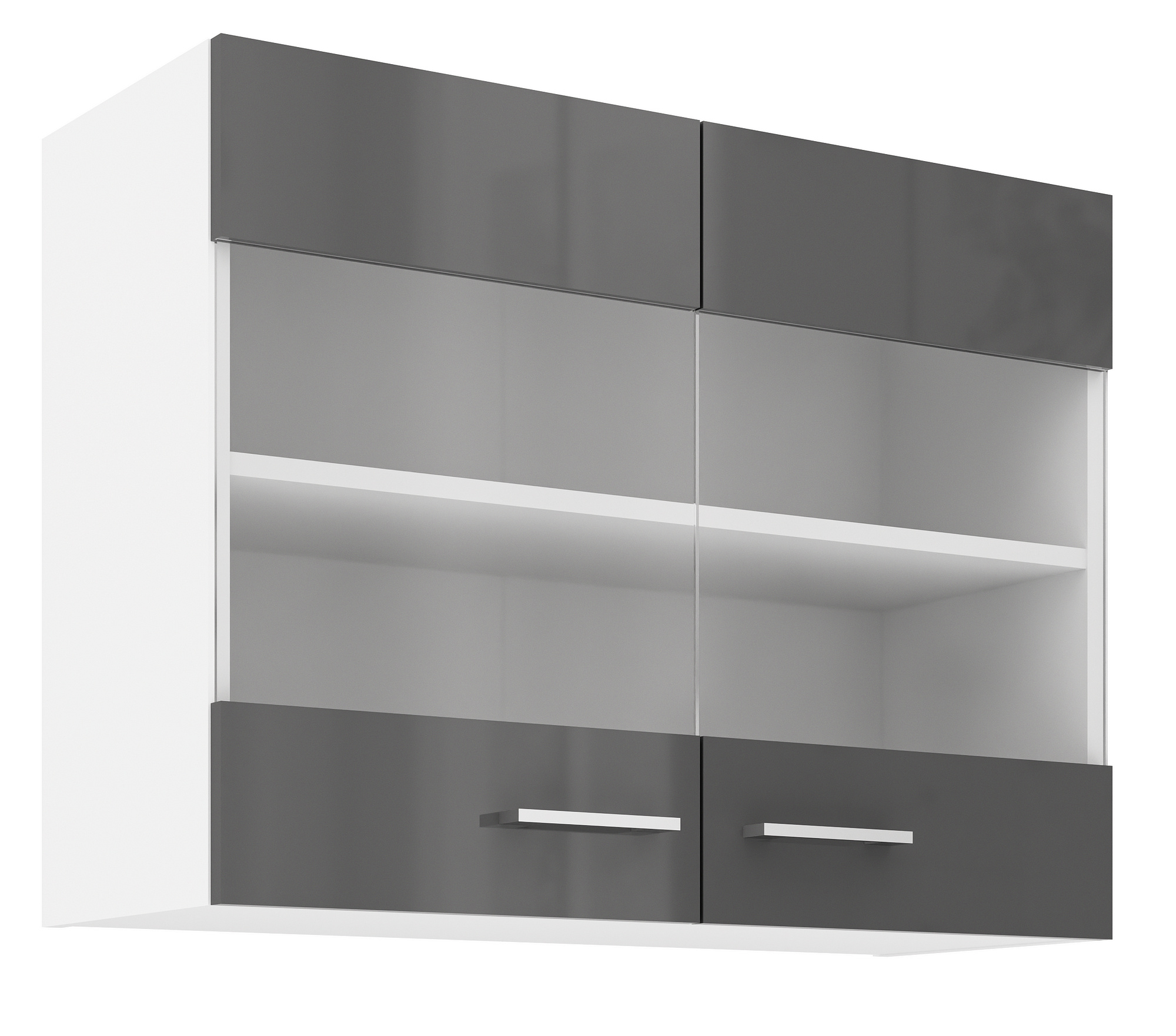 Horní skříňka SOLA - 80 GS-60 2F, Bílá/Šedý Lesk