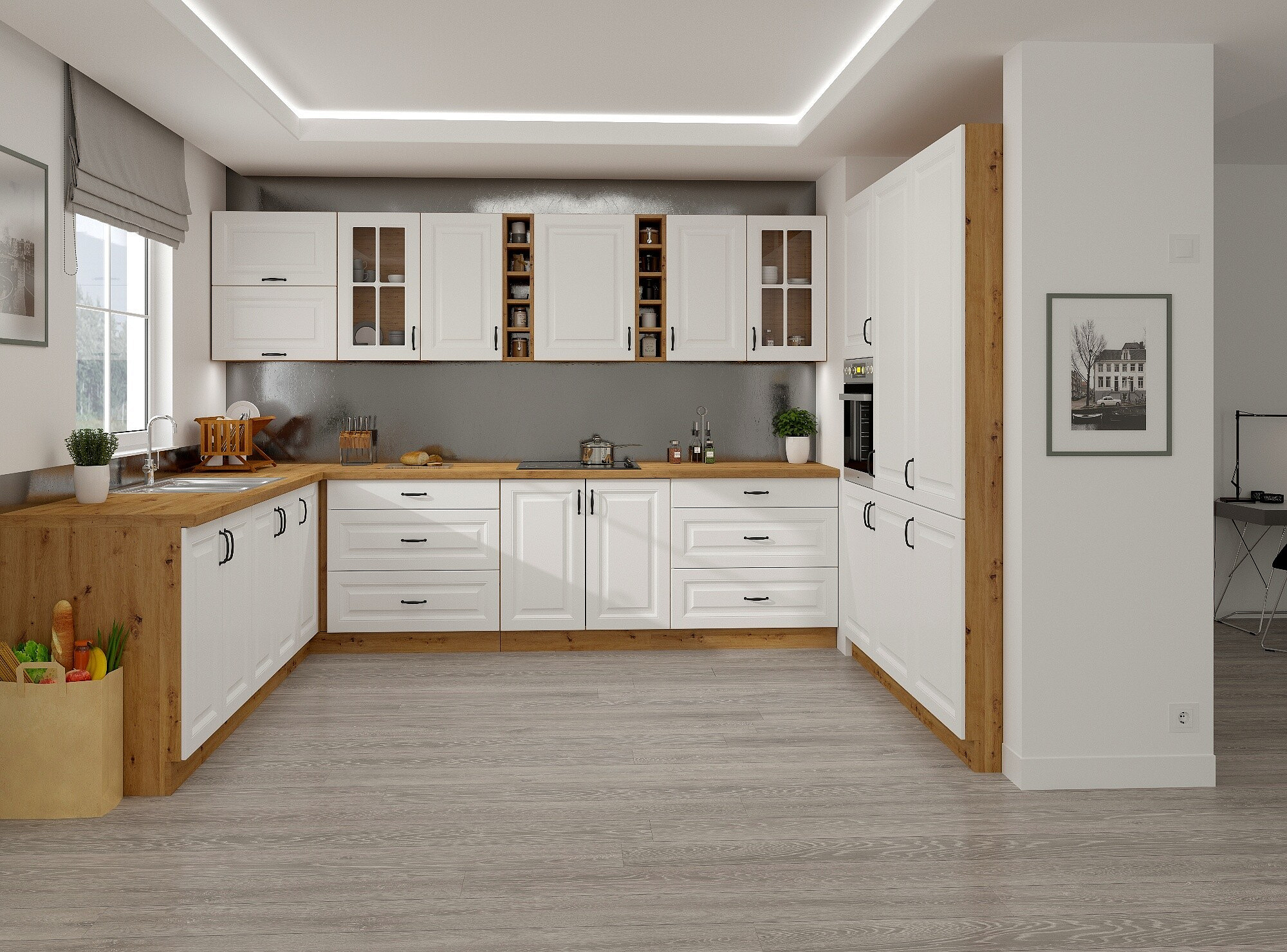 - Kuchyně ROYAL - Bílá/Borovice nordická