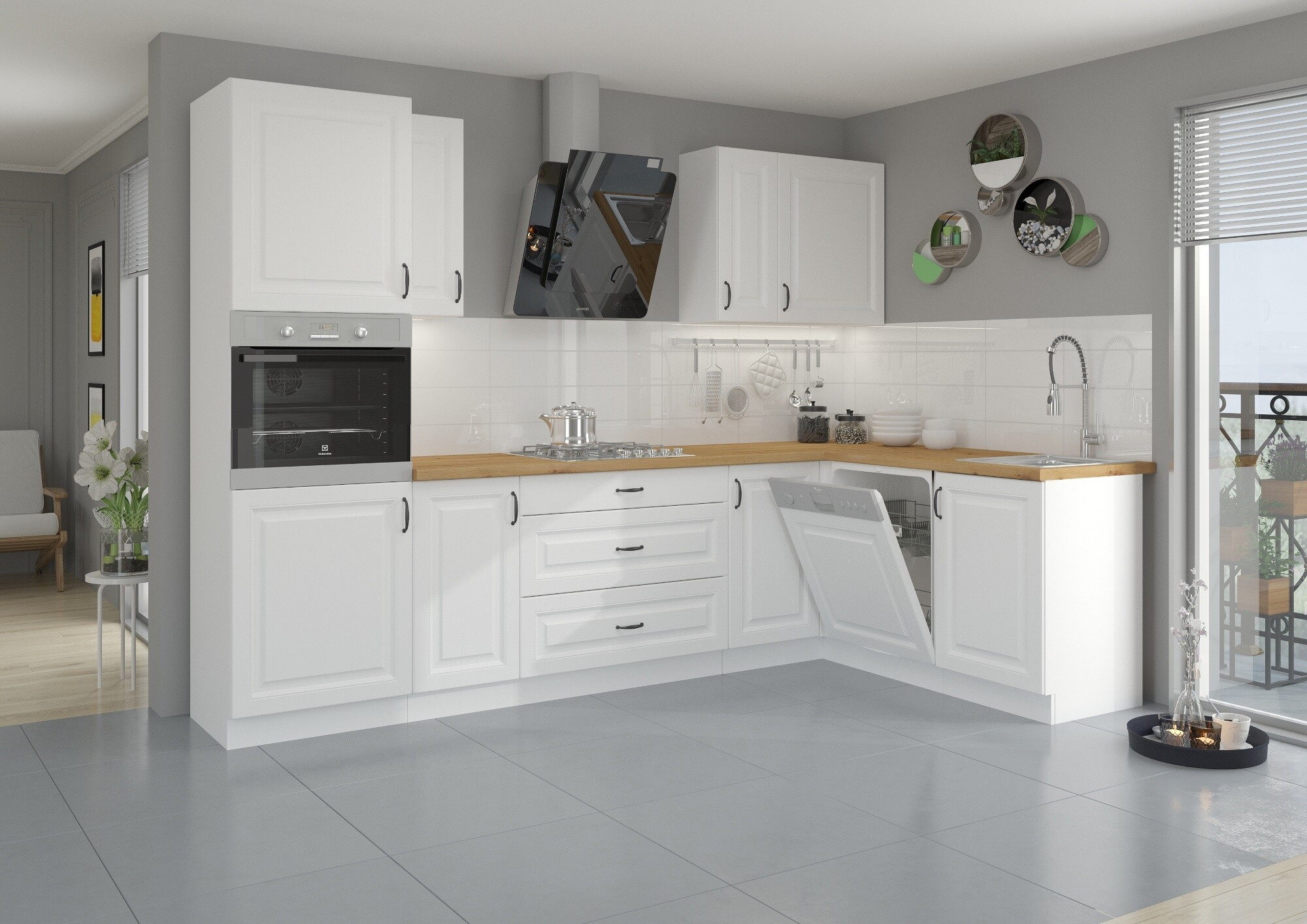 - Dvířka horních, dolních skřínek a dvířka vysokých skříní jsou universální (Pravé/Levé)
