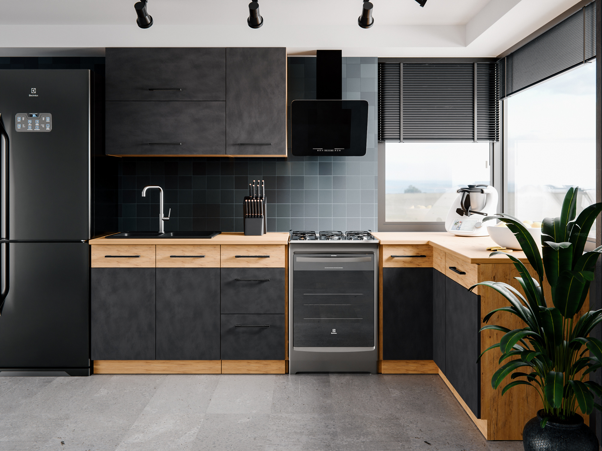 - Kuchyně MONZA - Černá/Ořech Okapi