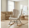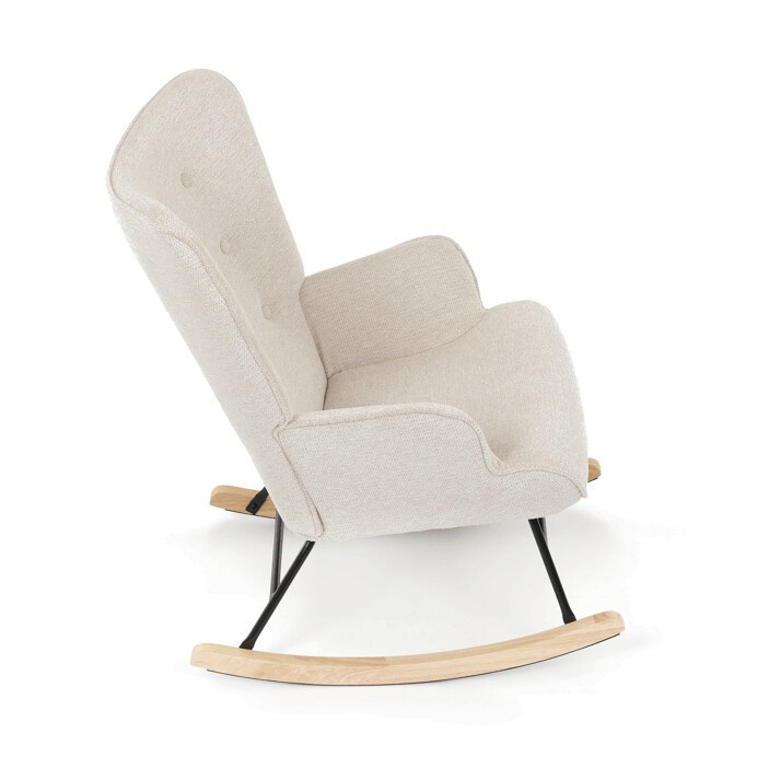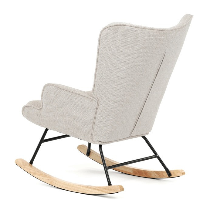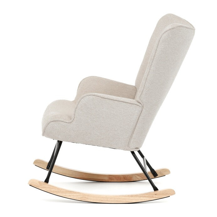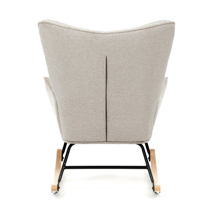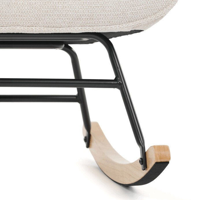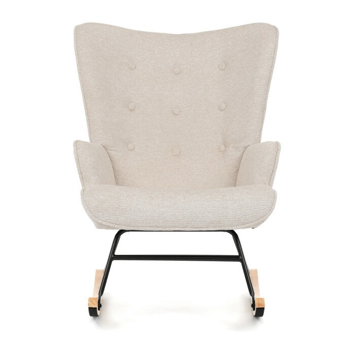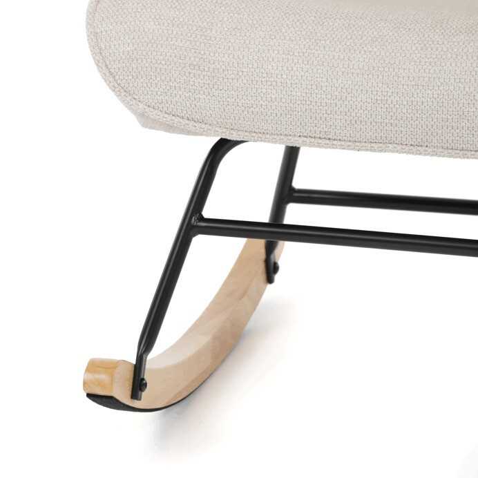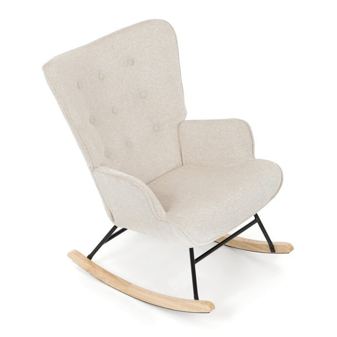 Houpací křeslo s béžovým čalouněním z prémiové látky nabízí pohodlné posezení s jemnou texturou, která je příjemná na dotek a snadno se udržuje. Sedák a opěradlo jsou ergonomicky tvarované a doplněné o pevné područky pro maximální komfort. Stabilní nohy jsou vyrobeny z kombinace černého kovu a masivního kaučukovníku, což zajišťuje pevnost a dlouhou životnost. Houpací mechanismus umožňuje plynulé a tiché houpání, které přispívá k relaxaci. Křeslo je vhodné do moderních i klasických interiérů, jeho rozměry a nosnost odpovídají běžným standardům pro pohodlné sezení.