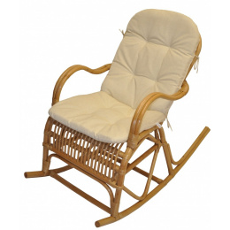 Klasické houpací křeslo v provedení z přírodního ratanu v medové barvě. | Křeslo je díky hustému výpletu velice pohodlné. Nově vám přinášíme možnost zakoupit toto křeslo včetně polstru plněného dutým vláknem. Díky kvalitnímu polstru, který je vyroben u nás v České republice, je křeslo pohodlnější a příjemnější na sezení. Barva ratanového houpacího křesla je medová Materiál: přírodní ratan Velikost křesla je 66x100x88 cm Nosnost křesla je 130 kg