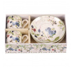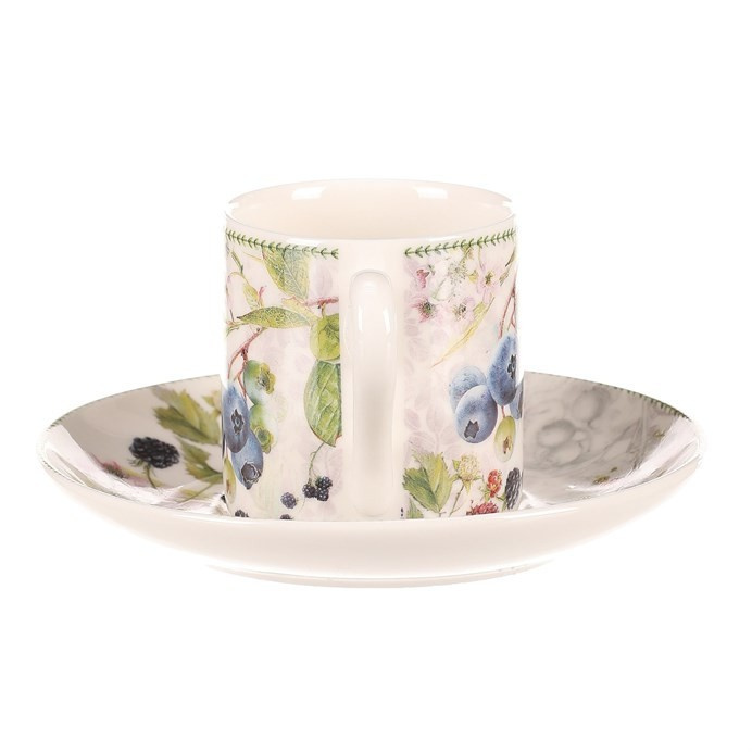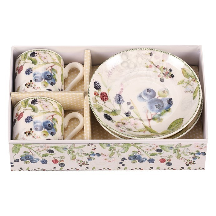 Hrneček s podšálky po 2 kusech - dárkový set, porcelán, bílý s lesními plody